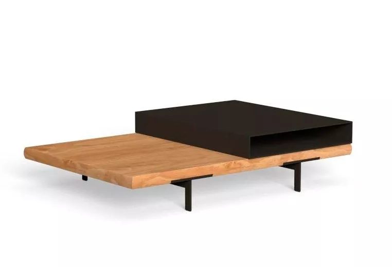 Der Couchtisch Allure zeichnet sich durch einen geometrischen und eleganten Stil aus. Durch das quadratische Design und die Qualität der Materialien drückt er eine moderne und originelle Persönlichkeit aus. Die massive Holzplatte wird von 4 linearen und leichten Aluminiumfüßen getragen. Das Gleichgewicht dieser Elemente verleiht dem Außenbereich Charakter und Persönlichkeit.