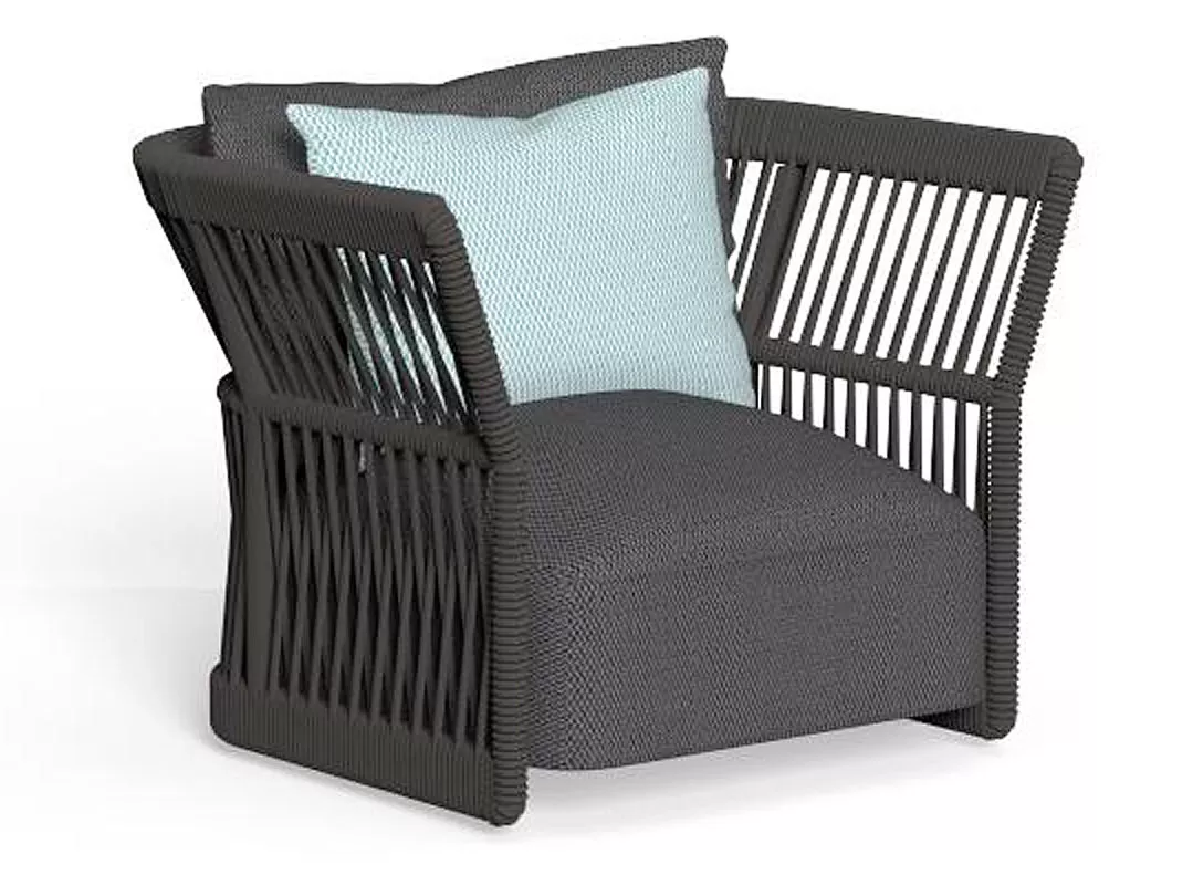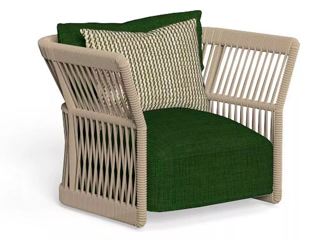 Talenti CLIFF Loungesessel • inklusive Auflage Das Sofa aus der Kollektion Cliff zeichnet sich durch seine großzügige Sitzfläche aus, die in die unverwechselbare Form der Elemente der Kollektion integriert ist. Das charakteristische Kordelgeflecht, das für alle Möbelstücke der Kollektion typisch ist, verleiht dem Sofa eine spielerische Note und unterstreicht die Lust am Spiel, die die gesamte Linie Cliff auszeichnet. Die Rückenlehne besteht aus einem Alurahmen, in den synthetische Seilkordeln eingeflochten sind. Die Kollektion Cliff ist das Ergebnis einer Kombination moderner Materialien, die eine einzigartige Ausdrucksform schaffen. Cliff steht für die Extreme Vielseitigkeit. Geflochtene Seilkordeln und Outdoor Gewebe sind die besonderen Details, die der gesamten Kollektion einen einzigartigen Stil verleihen. Unterschiedliche Farbtöne und die modulare Struktur ermöglichen es, die Elemente zu unzähligen Kombinationen zusammenzusetzen. Das Kordelgeflecht der Module ist an eine Rohrkonstruktion aus Metall gebunden, welche in der gleichen Farbe lackiert ist wie das Polstergewebe und die Kordel. Bei der textilen Ausführung wird der Rahmen von einem Bezug aus Textilgewebe verdeckt. Der graphitfarbene Unterbau besteht aus pulverlackiertem Aluminium, während die Struktur der Rückenlehne ebenfalls aus Aluminium besteht und je nach Ausführung entweder mit Seilkordeln aus synthetischem Material umflochten oder mit einem abziehbaren Bezug überzogen ist.Alle Elemente haben einen graphitfarbenen Aluminiumrahmen. Die Rückenlehnen sind in zwei Größen erhältlich: H 90 cm oder H 70 cm. Die Rückenlehnen in H 90 cm sind mit einem synthetischen Kordelgeflecht in den Farben Beige (R9) oder Dunkelgrau (R10) bezogen. Die Rückenlehnen in H 70 cm haben abnehmbare Bezüge und sind mit wetterbeständigen Outdoor-Stoffen in den Farben Beige (C42), Dunkelgrau (C48), Blau (C50) und Grün (C102) bezogen. Die Sitzkissen haben ebenfalls abnehmbare Bezüge und sind mit den gleichen wetterbeständigen Outdoor-Stoffen in den Farben Beige (C42), Dunkelgrau (C48), Blau (C50) und Grün (C102) bezogen. Die Polsterung besteht aus schnelltrocknendem Schaumstoff. Wir empfehlen, damit ihre Möbelstücke viele Jahrzehnte überstehen, die Möbel trotz ihrer Wetterbeständigkeit mit einer Schutzhülle gegen Regen und Schnee zu schützen. Produkteigenschaften Gestell: Aluminium, pulverbeschichtet Sitzpolster aus "Quick Dry" Schaumstoff Kissenhöhe: 38 cmSitzhöhe: 44 cm Maße: B95 × T81 × H72 cm Gewicht: 32 kg Achtung: Dekokissen können separat erworben werden - nicht im Lieferumfang enthalten Wir sind exklusiver Händler von Talenti - Outdoor Living. Falls Sie einen Artikel nicht bei uns im Online-Shop finden, zögern Sie nicht uns zu kontaktieren. Wir können Ihnen die gesamte Talenti-Kollektion bestellen.