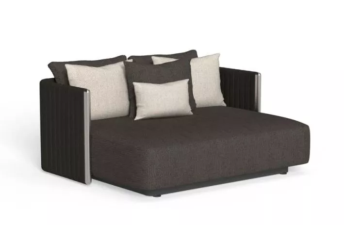 Talenti SLAM - Recamiere Modul • exkl. Dekokissen • inklusive Sitz- und Rückenkissen Die Eleganz der Kollektion Slam kommt in den Linien dieses Modulsofas bestens zum Ausdruck. Die einzenen Module erlauben es, mit den Formen zu spielen und so einen ganz persönlichen Außenbereich zu schaffen, der allen Anforderungen gerecht wird. Die Formen des Sofas schaffen reine, organisches Kombinationen, die sich jedem Raum anpassen und in keinem Outdoor-Bereich, der auf Bequemlichkeit und Stil setzt, fehlen dürfen. Das robuste Alugestell garantiert Langlebigkeit und die abziehbaren und pflegeleichten Polster sind ideal, um den Wohnbereich im Freien unbegrenzt genießen zu können. Mit dem Modulsofa SLAM lassen sich kreative und elegante Kombinationen schaffen, die jeden Wohnbereich im Freien aufwerten. Die in der gesamten Kollektion anzutreffende reine und ausgeglichene Geometrie kommt bei diesem leichten, minimalistischen Alugestell zum Ausdruck; es passt bestens zu Rücken- und Armlehnen und verleiht den Modulen ein raffiniertes und zugleich elegantes Design. Die abziehbaren, wetterfesten Polster bereichern das Modell dank der einladenden, großzügigen Formen und der Haptik der sorgfältig ausgewählten Textilgewebe. Die in zahlreichen Farbtönen verfügbaren Dekokissen verleihen dem Produkt eine persönliche Note und verwandeln jeden Platz im Freien in ein einzigartiges und charaktervolles Outdoor-Ambiente. Wir empfehlen, damit ihre Möbelstücke viele Jahrzehnte überstehen, die Möbel trotz ihrer Wetterbeständigkeit mit einer Schutzhülle gegen Regen und Schnee zu schützen. Produkteigenschaften Gestell: Aluminium, pulverbeschichtet Sitzpolster aus "Quick Dry" Schaumstoff Sitzhöhe: 41 cm Maße: B94 × T186 × H65 cm Gewicht: 39 kg Achtung: Dekokissen können separat erworben werden - nicht im Lieferumfang enthalten Wir sind exklusiver Händler von Talenti - Outdoor Living. Falls Sie einen Artikel nicht bei uns im Online-Shop finden, zögern Sie nicht uns zu kontaktieren. Wir können Ihnen die gesamte Talenti-Kollektion bestellen.