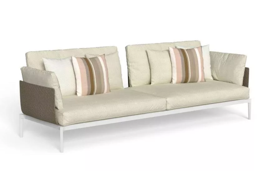 Talenti LEAF Loungesofa DX • Gartensofa inkl. Polster Mit Talenti LEAF schaffen Sie ein Ambiente in Ihrem Garten, das harmonisch und zugleich modern ist. Die Kollektion ist nicht nur schön anzusehen, sondern auch äußerst bequem und langlebig. Die weichen Kissen laden zum Entspannen und Verweilen ein, während die schlanken Füße dem Möbelstück eine gewisse Leichtigkeit verleihen. Ob Sie alleine oder mit Freunden auf dem LEAF Outdoor-Sofa sitzen, Sie werden das Gefühl haben, inmitten einer blühenden Natur zu sein. Die gesamte Kollektion ist darauf ausgerichtet, Ihnen ein Stück Natur in Ihren eigenen Garten zu bringen. Die hochwertigen Materialien und die sorgfältige Verarbeitung sorgen dafür, dass Sie viele Jahre Freude an den Möbeln haben werden. Überzeugen Sie sich selbst von Talenti LEAF und holen Sie sich die Natur in Ihren Garten! Das Talenti LEAF Outdoor-Möbelset ist ein unikates und wunderschönes Design für jeden Garten oder Balkon. Egal, ob Sie eine große Terrasse haben oder nur einen kleinen Balkon, die Möbelstücke der Talenti LEAF Kollektion passen sich perfekt an Ihre Bedürfnisse an. Das elegante und leichte Design der Möbel lässt Ihren Außenbereich heller und freundlicher erscheinen und bringt das Gefühl von Natur und Leichtigkeit in Ihren Alltag.Die Talenti LEAF Kollektion ist eine Investition in die Zukunft, denn durch die Verwendung hochwertiger Materialien sind die Möbelstücke langlebig und wetterfest. Sie können also das ganze Jahr über draußen bleiben und sind dennoch in einem hervorragenden Zustand. Entdecken Sie die Talenti LEAF Kollektion und schaffen Sie sich eine Wohlfühloase in Ihrem Garten oder auf Ihrer Terrasse! Alle Artikel zeichnen sich durch eine pulverbeschichtete Aluminiumstruktur in den folgenden Farben aus: Weiß (A12), Graphit (A14) und Mokka (A15). Der Stoff ist in den Varianten Taubenmelange (C35), Asche (C92), Silber (C96), Inka Bronze (C97), Inka Muster (C114) und Iris Sand (C151) erhältlich. Die Kissen bestehen aus Stoff und sind abnehmbar, leicht zu waschen und wetterbeständig. Die Polsterung besteht aus schnell trocknendem Schaumstoff. Die Arm- und Rückenlehnen sind mit gewebtem wetterfesten Stoff in den Farben Hellgrau (W1), Dunkelgrau (W2) und Taube (W3) bezogen. Es gibt Esstische und Couchtische mit Metallplatten in den Farben Hellgrau (S22), Dunkelgrau (S23) und Corten (S24). Wir empfehlen, damit ihre Möbelstücke viele Jahrzehnte überstehen, die Möbel trotz ihrer Wetterbeständigkeit mit einer Schutzhülle gegen Regen und Schnee zu schützen. Produkteigenschaften Gestell: Aluminium, pulverbeschichtet Sitzpolster aus "Quick Dry" Schaumstoff Kissenhöhe: 17 cm Sitzhöhe: 41 cm Maße: B190 × T84 × H69 cm Gewicht: 40 kg Achtung: Dekokissen können separat erworben werden - nicht im Lieferumfang enthalten Wir sind exklusiver Händler von Talenti - Outdoor Living. Falls Sie einen Artikel nicht bei uns im Online-Shop finden, zögern Sie nicht uns zu kontaktieren. Wir können Ihnen die gesamte Talenti-Kollektion bestellen.