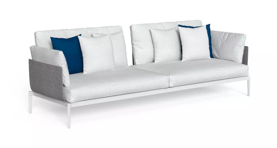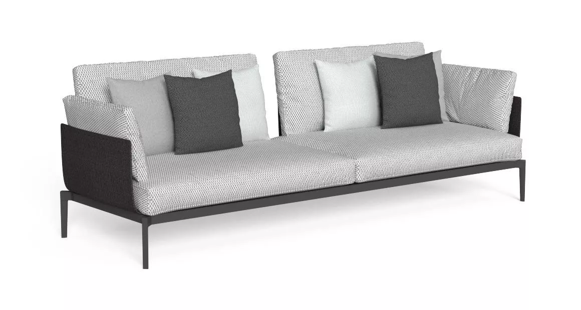 Talenti Leaf Loungesofa • Gartensofa inkl. Polster Mit Talenti Leaf schaffen Sie ein Ambiente in Ihrem Garten, das harmonisch und zugleich modern ist. Die Kollektion ist nicht nur schön anzusehen, sondern auch äußerst bequem und langlebig. Die weichen Kissen laden zum Entspannen und Verweilen ein, während die schlanken Füße dem Möbelstück eine gewisse Leichtigkeit verleihen. Ob Sie alleine oder mit Freunden auf dem Leaf Outdoor-Sofa sitzen, Sie werden das Gefühl haben, inmitten einer blühenden Natur zu sein. Die gesamte Kollektion ist darauf ausgerichtet, Ihnen ein Stück Natur in Ihren eigenen Garten zu bringen. Die hochwertigen Materialien und die sorgfältige Verarbeitung sorgen dafür, dass Sie viele Jahre Freude an den Möbeln haben werden. Überzeugen Sie sich selbst von Talenti Leaf und holen Sie sich die Natur in Ihren Garten! Das Talenti Leaf Outdoor-Möbelset ist ein unikates und wunderschönes Design für jeden Garten oder Balkon. Egal, ob Sie eine große Terrasse haben oder nur einen kleinen Balkon, die Möbelstücke der Talenti Leaf Kollektion passen sich perfekt an Ihre Bedürfnisse an. Das elegante und leichte Design der Möbel lässt Ihren Außenbereich heller und freundlicher erscheinen und bringt das Gefühl von Natur und Leichtigkeit in Ihren Alltag.Die Talenti Leaf Kollektion ist eine Investition in die Zukunft, denn durch die Verwendung hochwertiger Materialien sind die Möbelstücke langlebig und wetterfest. Sie können also das ganze Jahr über draußen bleiben und sind dennoch in einem hervorragenden Zustand. Entdecken Sie die Talenti Leaf Kollektion und schaffen Sie sich eine Wohlfühloase in Ihrem Garten oder auf Ihrer Terrasse! Alle Artikel zeichnen sich durch eine pulverbeschichtete Aluminiumstruktur in den folgenden Farben aus: Weiß (A12), Graphit (A14) und Mokka (A15). Der Stoff ist in den Varianten Taubenmelange (C35), Asche (C92), Silber (C96), Inka Bronze (C97), Inka Muster (C114) und Iris Sand (C151) erhältlich. Die Kissen bestehen aus Stoff und sind abnehmbar, leicht zu waschen und wetterbeständig. Die Polsterung besteht aus schnell trocknendem Schaumstoff. Die Arm- und Rückenlehnen sind mit gewebtem wetterfesten Stoff in den Farben Hellgrau (W1), Dunkelgrau (W2) und Taube (W3) bezogen. Es gibt Esstische und Couchtische mit Metallplatten in den Farben Hellgrau (S22), Dunkelgrau (S23) und Corten (S24). Wir empfehlen, damit ihre Möbelstücke viele Jahrzehnte überstehen, die Möbel trotz ihrer Wetterbeständigkeit mit einer Schutzhülle gegen Regen und Schnee zu schützen. Produkteigenschaften Gestell: Aluminium, pulverbeschichtet Sitzpolster aus "Quick Dry" Schaumstoff Kissenhöhe: 17 cm Sitzhöhe: 41 cm Maße: B195 × T84 × H69 cm Gewicht: unter 57 kg Achtung: Dekokissen können separat erworben werden - nicht im Lieferumfang enthalten Wir sind exklusiver Händler von Talenti - Outdoor Living. Falls Sie einen Artikel nicht bei uns im Online-Shop finden, zögern Sie nicht uns zu kontaktieren. Wir können Ihnen die gesamte Talenti-Kollektion bestellen.