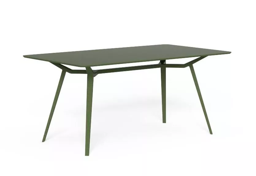 Das Gestell und die Tischplatte sind aus pulverbeschichtetem Aluminium und in den Farben Weiß, Rot, Schilfgrün und Graphit erhältlich.