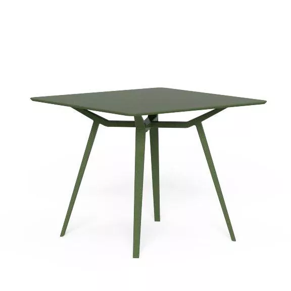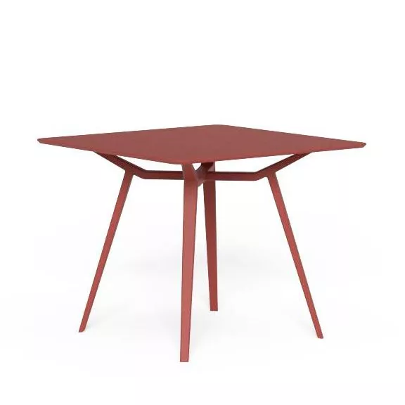 Das Gestell und die Tischplatte sind aus pulverbeschichtetem Aluminium und in den Farben Weiß, Rot, Schilfgrün und Graphit erhältlich.