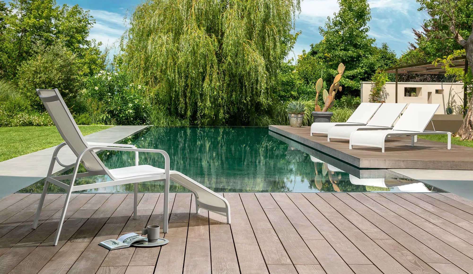 Die Sitzfläche und die Rückenlehne des Milo Liegestuhls sind mit einem speziellen Gleitmechanismus ausgestattet, der es dem Benutzer ermöglicht, die Position der Liege in verschiedenen Winkeln zu verstellen, um maximalen Komfort zu bieten. So kann man die Liege sowohl flach zum Sonnenbaden oder in einer aufrechteren Position zum Lesen oder Entspannen nutzen.