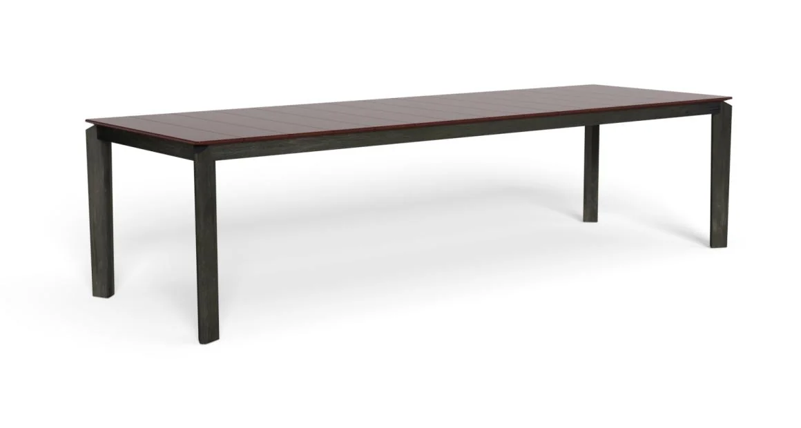 Der Thea Esstisch ist ein beeindruckendes Designelement, das Eleganz und Funktionalität in perfekter Harmonie vereint. Erhältlich in zwei großzügigen Größen – 200×100 cm und 300×100 cm – bietet er reichlich Platz für gesellige Momente im Freien.