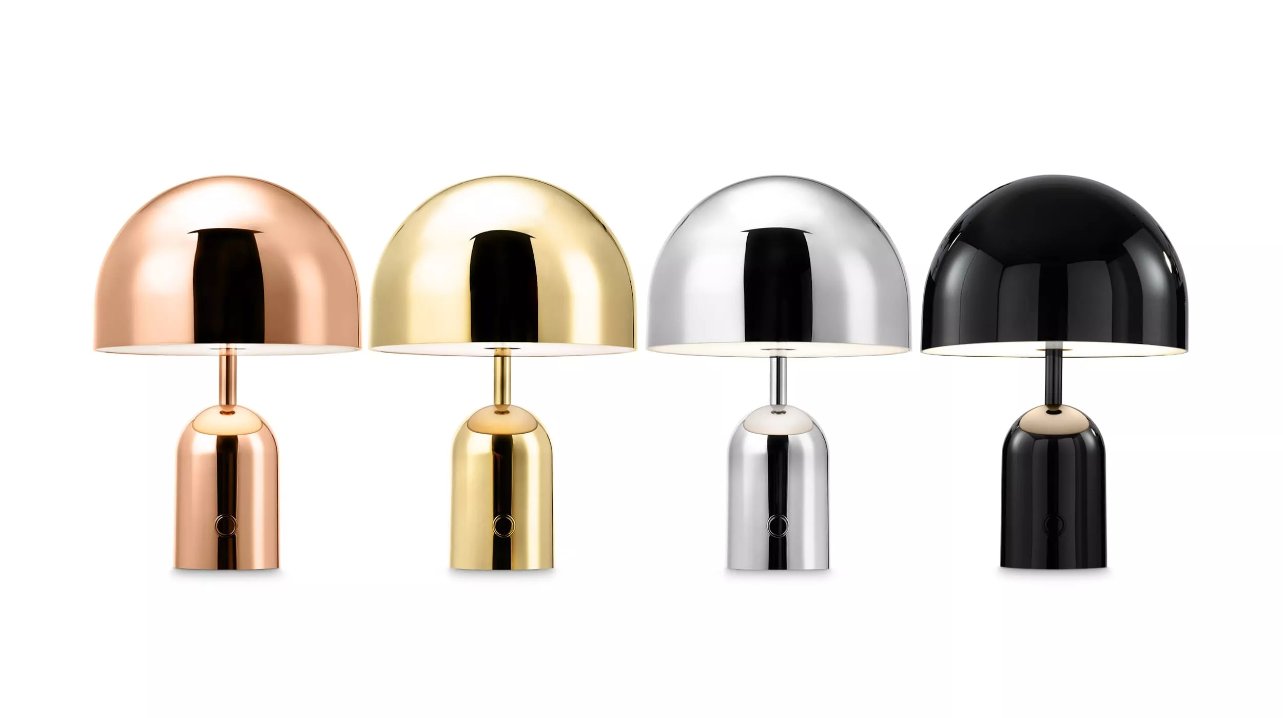 Die Bell Tischleuchte von Tom Dixon ist in verschiedenen Größen und Farbvarianten erhältlich und kann auch als Stehleuchte oder Pendelleuchte erworben werden.