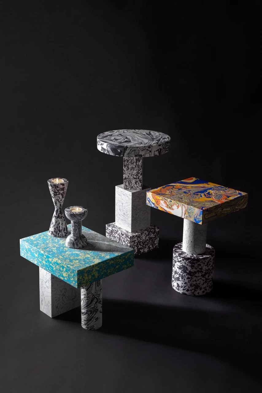 Dank dieser besonderen Technik ist jedes Stück ein Unikat, das durch sein einzigartiges Muster und seine lebendige Farbgebung auffällt. Die Swirl-Kollektion umfasst neben den Tischen auch Kerzenhalter, Bücherstützen und Vasen, die alle den charakteristischen skulpturalen Look teilen. Der Swirl Beistelltisch ist nicht nur ein praktisches Möbelstück, sondern auch ein eindrucksvolles Designobjekt, das jedem Raum Persönlichkeit verleiht.