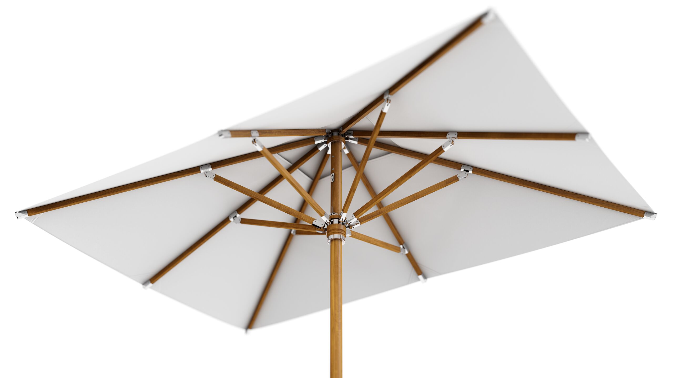 Der Ocean Master MAX Northstar Nautical Teak verbindet klassische Segelarchitektur mit moderner Ingenieurskunst: edles, hochwertiges Teakholz trifft auf korrosionsbeständige, maritime Komponenten und präzise verarbeitete Details. Charakteristisch sind die polierten Ridge-Details sowie der teleskopierende Aluma-CORE Mast, der das Öffnen und Schließen ermöglicht, ohne dass Möbel unter dem Schirm im Weg stehen.