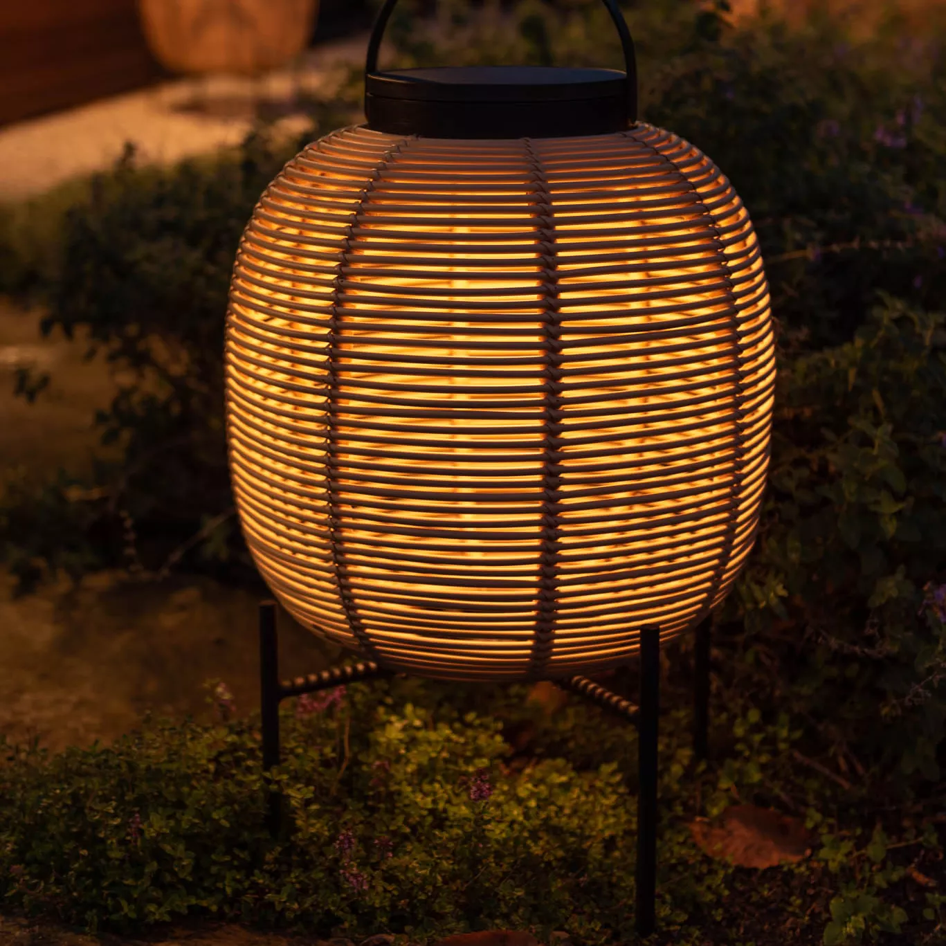 Eine solarbetriebene Laterne, die Ihren Außenbereich zum Leuchten bringt. Der gewebte Korb erzeugt ein atemberaubendes Schattenspiel, während der Aluminiumfuß dem Ganzen einen industriellen Touch verleiht. Verfügbar in zwei Größen.
