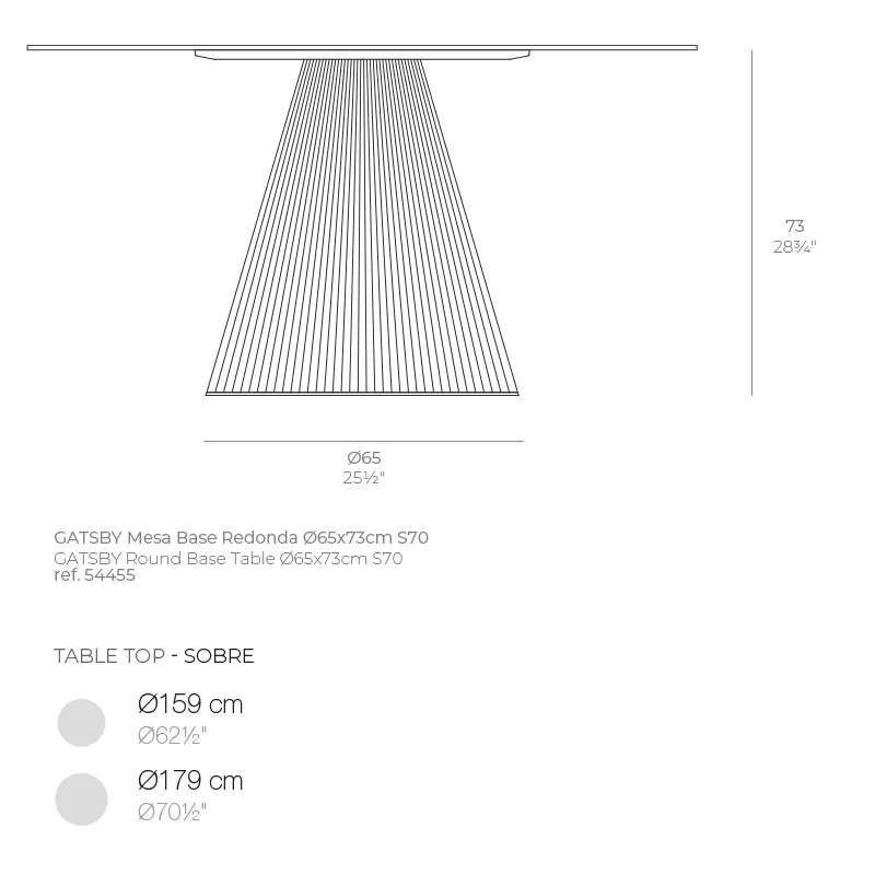 - Verschiedene Tischplattengrößen mit einem Durchmesser von 159 cm oder 179 cm
