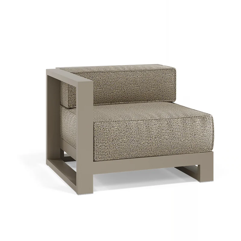Dank der wahlweise links oder rechts positionierbaren Armlehne (sitzend gesehen) passt sich das Modul mühelos an individuelle Lounge-Kombinationen an. Die hochwertige Polsterung, die in verschiedenen Ausführungen erhältlich ist, sorgt für ein luxuriöses Sitzerlebnis und macht es ideal für entspannte Stunden im Freien.