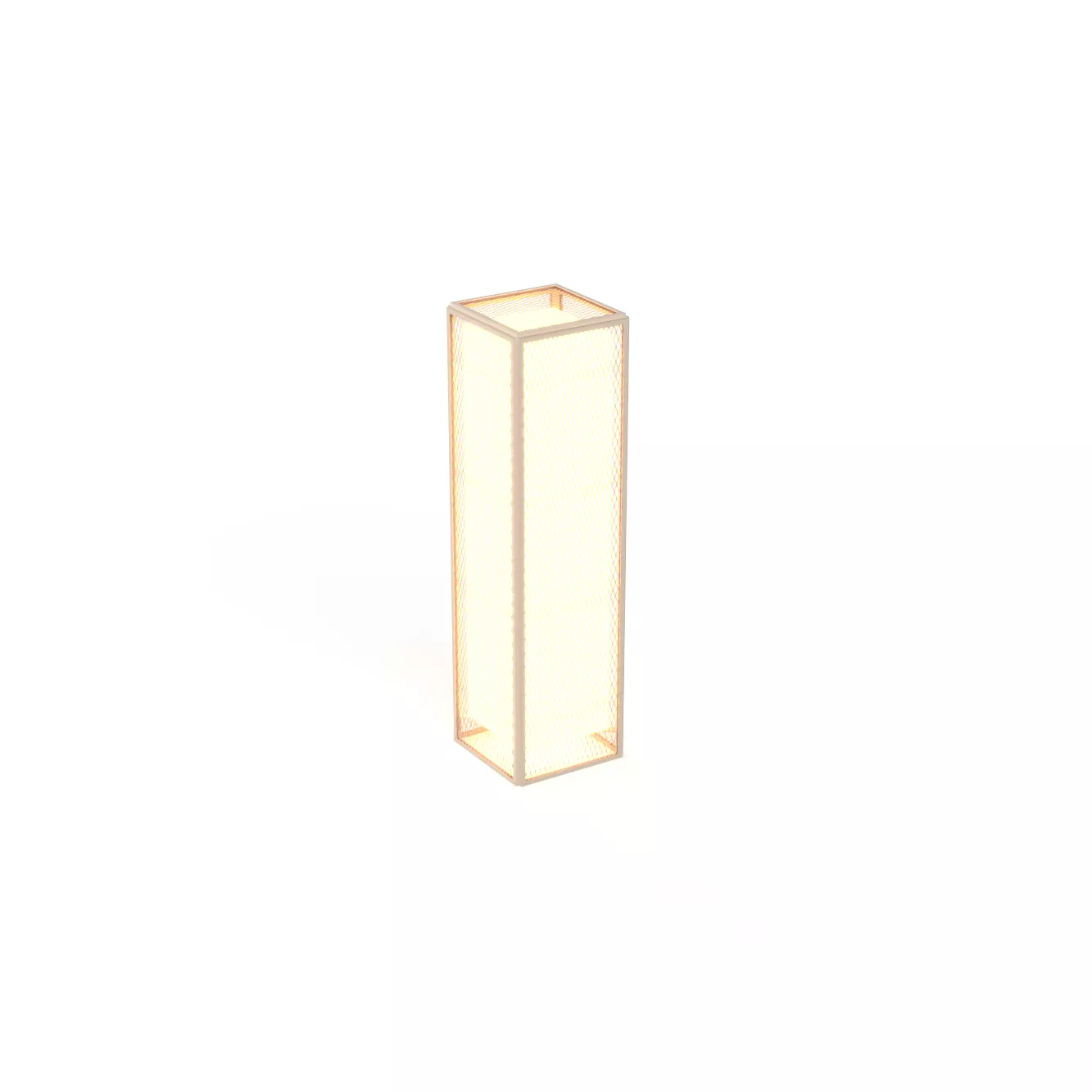 - Das ausgedehnte Gitter (deployé mesh) ist aus Aluminium gefertigt und die innere Beleuchtung besteht aus Polyethylenharz