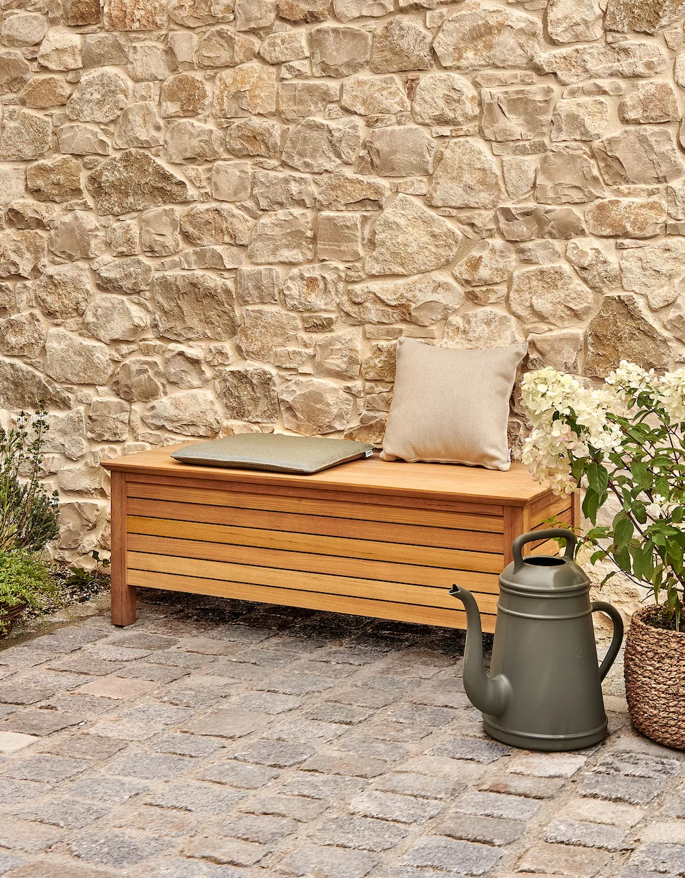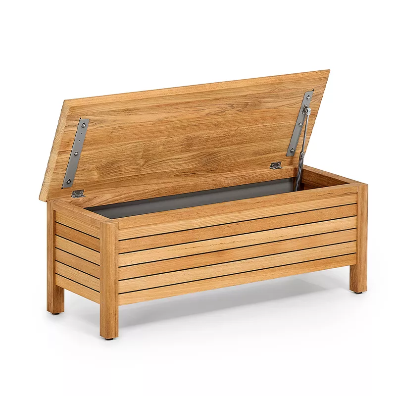 Für die Nebenrolle an der Wand sind sie eigentlich viel zu schade. Die neuen Outdoor-Schränke stehen gerne im Mittelpunkt. Schließlich sind sie nicht nur zuverlässige Assistenten, wenn es ums Verstauen geht, sondern neben aller gebotenen Funktionalität auch Schmuckstücke, die an jedem Ort die Blicke auf sich ziehen. Alle Modelle werden aus massivem, unbehandeltem Teak bzw. Teakdeck (Teak mit Silikat verfugt) gefertigt. Bei den Fachböden wird verzinktes und mattsilber pulverbeschichtetes Stahlblech verwendet, bei den Schubkastenböden kommt Edelstahlblech zum Einsatz. Sowohl in der Materialwahl wie auch in der hochwertigen Verarbeitung jedes einzelnen Möbelstückes wird unseren Anspruch an die Beständigkeit und Funktionalität unterstreichen. Ob als Solitär, Polstertruhe, Polstertruhe oder in der Kombination als Outdoor-Küche genutzt - in jedem Fall eine wertvolle Bereicherung von Garten, Terrasse oder Wohnraum.