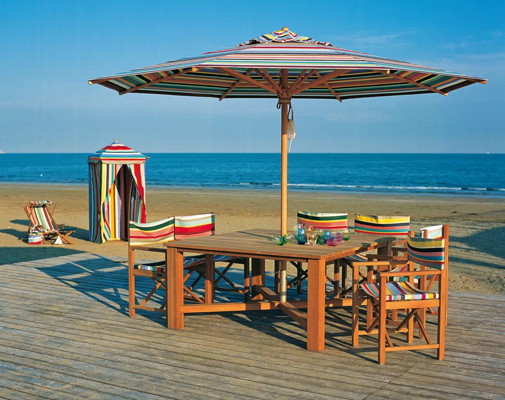 Der Sonnenschirm kann jedem Ambiente angepasst werden. Bei der Verwendung von Schirmtischen, bzw. Bodenplatten kann man so die Länge des Schirmstammes verstellen, um den Schirm den Gegebenheiten anzupassen. Zudem ist es bei manchen Modellen möglich, Knickmechanismen einbauen zu lassen, um den Umgang mit dem Sonnenschirm Klassiker von Weishäupl noch flexibler zu gestalten.