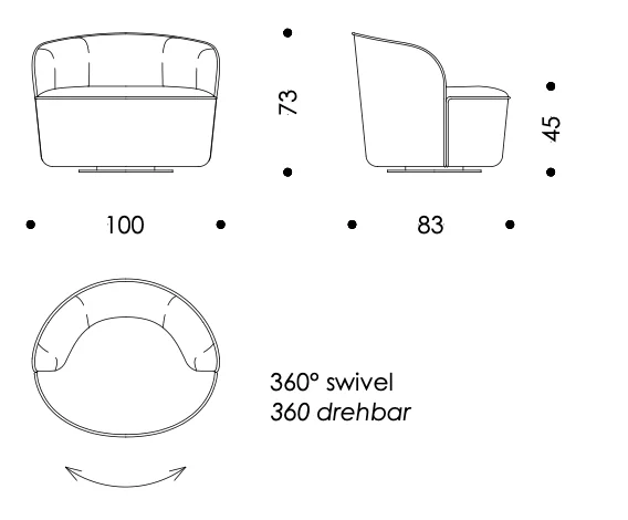 Wittmann ANDES • DrehsesselAndes – elegante Vielfalt in Wiener Tradition. Andes interpretiert klassische Salonmöbel neu – inspiriert von Wiener Handwerkskunst, modern gedacht für die ganze Welt. Die Serie besticht durch unzählige Kombinationsmöglichkeiten: verschiedene Elementgrößen, Sitztiefen, Farben und Materialien lassen immer wieder neue, individuelle Konfigurationen entstehen. Organisch geformte Polster scheinen auf filigranen Metallgestellen in zwei Höhen zu schweben. Doppelt gezogene Kederlinien und meisterhafte Verarbeitung unterstreichen den hohen Anspruch. Der typische Wittmann-Komfort mit Taschenfederkern sorgt für sanfte Unterstützung. Neu in der Familie: der Andes Sessel. Er ergänzt das System perfekt – stilvoll, vielseitig und ganz im Zeichen echter Handwerkskunst.Produktbeschreibung: Gestell: Metall-HolzkonstruktionDrehmechanismusBeine: Metall Black Grey mit Lederfasergleitern (gegen Aufpreis auch in Messing Satin Matt erhältlich)Sitzhöhe: 42 cm (auf Wunsch auch 46 cm erhältlich)Bezug: Fixbezug mit KederKeder: wie BezugSitz: Starre Begurtung, Taschenfederkern, Polymousse Sandwichaufbau mit VliesabdeckungArmteil, Lehne: Polymousse Sandwichaufbau mit VliesabdeckungLehnkissen: 100% Federfüllung mit Polymousse-KernSonderanfertigungen auf AnfrageSitzbreite: 53 cmSitztiefe: 47 cmHinweis: Falten sind design-, verarbeitungs- bzw. materialbedingt und stellen keinen Reklamationsgrund dar. Farbabweichung bei Stoffen, Ledern, Holz und Stein (insbesondere Naturstein/ Marmor) sowie Glas gegenüber der Wittmann Musterkollektion - insbesondere bei Nachlieferungen - berechtigen nicht zur Reklamation. Echtes Leder ist ein reines Naturprodukt. Die Haut der Tiere kann bestimmte Merkmale wie verheilte Heckenrisse, Insektenstiche und ähnliches aufweisen. Diese Merkmale, so wie Farbabweichungen sind keine Qualitätsminderungen, sondern vielmehr Zeichen für die Naturbelassenheit der Häute. Im Gebrauch „lebt“ Leder weiter, so dass sich Falten bilden und sich die Oberflächenstruktur verändert. Diese Veränderungen sind beabsichtigt und stellen daher in keinem Fall ein Reklamationsgrund dar. Bitte beachten Sie, dass die angezeigten Bilder Illustrationszwecken dienen und von dem tatsächlichen Endprodukt abweichen können.
