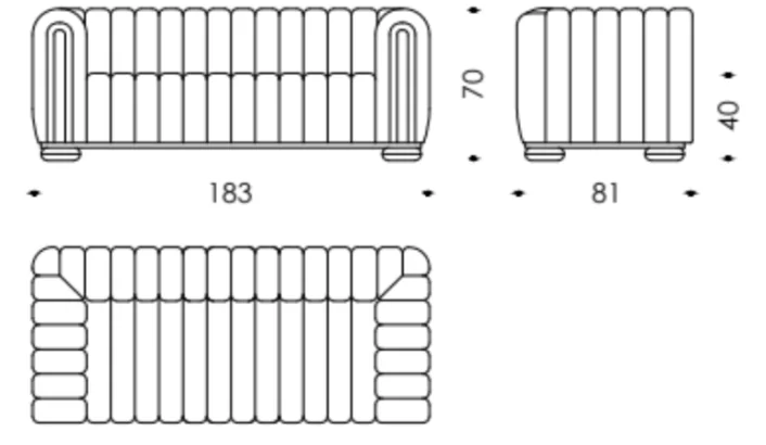 - Maße: B 183 x T 81 x H 70 cm (Sitzhöhe 40cm)