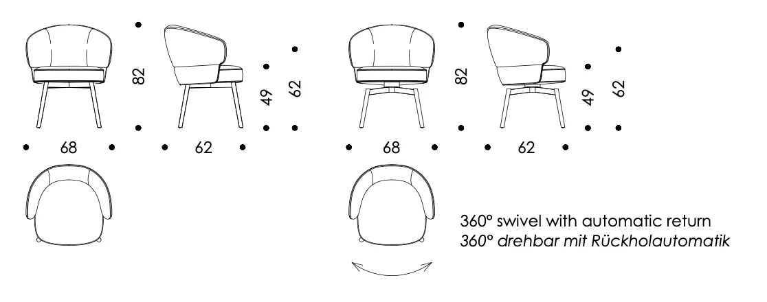 Wittmann ANDES • DrehsesselAndes – elegante Vielfalt in Wiener Tradition. Andes interpretiert klassische Salonmöbel neu – inspiriert von Wiener Handwerkskunst, modern gedacht für die ganze Welt. Die Serie besticht durch unzählige Kombinationsmöglichkeiten: verschiedene Elementgrößen, Sitztiefen, Farben und Materialien lassen immer wieder neue, individuelle Konfigurationen entstehen. Organisch geformte Polster scheinen auf filigranen Metallgestellen in zwei Höhen zu schweben. Doppelt gezogene Kederlinien und meisterhafte Verarbeitung unterstreichen den hohen Anspruch. Der typische Wittmann-Komfort mit Taschenfederkern sorgt für sanfte Unterstützung. Neu in der Familie: der Andes Sessel. Er ergänzt das System perfekt – stilvoll, vielseitig und ganz im Zeichen echter Handwerkskunst.Produktbeschreibung: Gestell: Metall-HolzkonstruktionDrehmechanismusBeine: Metall Black Grey mit Lederfasergleitern (gegen Aufpreis auch in Messing Satin Matt erhältlich)Sitzhöhe: 42 cm (auf Wunsch auch 46 cm erhältlich)Bezug: Fixbezug mit KederKeder: wie BezugSitz: Starre Begurtung, Taschenfederkern, Polymousse Sandwichaufbau mit VliesabdeckungArmteil, Lehne: Polymousse Sandwichaufbau mit VliesabdeckungLehnkissen: 100% Federfüllung mit Polymousse-KernSonderanfertigungen auf AnfrageSitzbreite: 53 cmSitztiefe: 47 cmHinweis: Falten sind design-, verarbeitungs- bzw. materialbedingt und stellen keinen Reklamationsgrund dar. Farbabweichung bei Stoffen, Ledern, Holz und Stein (insbesondere Naturstein/ Marmor) sowie Glas gegenüber der Wittmann Musterkollektion - insbesondere bei Nachlieferungen - berechtigen nicht zur Reklamation. Echtes Leder ist ein reines Naturprodukt. Die Haut der Tiere kann bestimmte Merkmale wie verheilte Heckenrisse, Insektenstiche und ähnliches aufweisen. Diese Merkmale, so wie Farbabweichungen sind keine Qualitätsminderungen, sondern vielmehr Zeichen für die Naturbelassenheit der Häute. Im Gebrauch „lebt“ Leder weiter, so dass sich Falten bilden und sich die Oberflächenstruktur verändert. Diese Veränderungen sind beabsichtigt und stellen daher in keinem Fall ein Reklamationsgrund dar. Bitte beachten Sie, dass die angezeigten Bilder Illustrationszwecken dienen und von dem tatsächlichen Endprodukt abweichen können.
