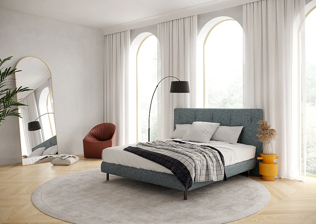 Die Abbildung zeigt das Stan Bett in der Ausführung Gent Petrol