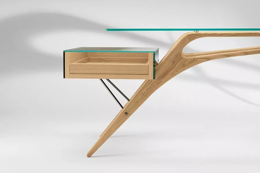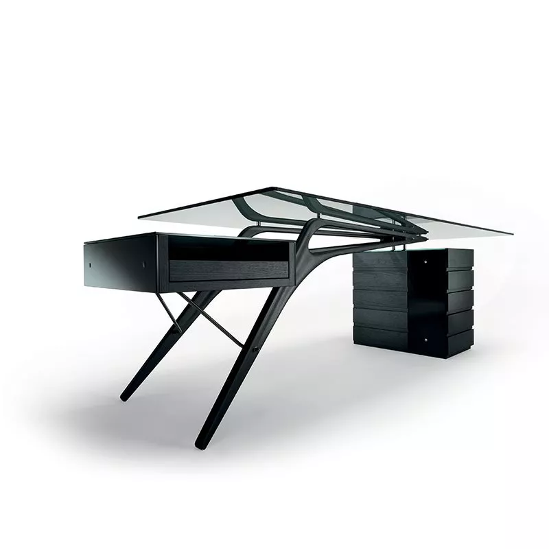 Der Cavour Schreibtisch ist eine meisterhafte Kombination aus Natur und Eleganz. Seine Beine sind aus massiver Eiche oder Nussbaum Canaletto gefertigt und mit einer sorgfältigen Wachs-Endbehandlung veredelt. Diese Oberflächen verleihen dem Schreibtisch eine zeitlose Schönheit und langanhaltende Haltbarkeit. Der Schreibtisch verfügt über ein ausziehbares offenes Tablett und eine Schublade, beide kunstvoll furniert mit natürlicher oder schwarz gebeizter Eiche sowie Nussbaum Canaletto. Diese Bereiche sind mit extra-klarem gehärtetem Kristallglas bezogen, das nicht nur stilvoll ist, sondern auch robust für den täglichen Gebrauch. Die Tischplatte ist in verschiedenen Ausführungen erhältlich, darunter transparentes oder extra-klarem Kristallglas sowie elegantes grau rauchfarbenes Kristallglas, passend zum schwarz gebeizten Eichenrahmen. Auf Anfrage steht ein Executive Kit zur Verfügung, das das ausziehbare offene Tablett und die erste Schublade mit luxuriösem schwarzem Kernleder überzieht. Zusätzlich enthält es eine Schreibunterlage und einen Holzstifthalter in den gleichen exquisiten Ausführungen wie der Schreibtisch selbst. Der Cavour Schreibtisch ist nicht nur ein Arbeitsmöbelstück, sondern auch ein Kunstwerk, das Luxus und Klasse in Ihren Arbeitsraum bringt.