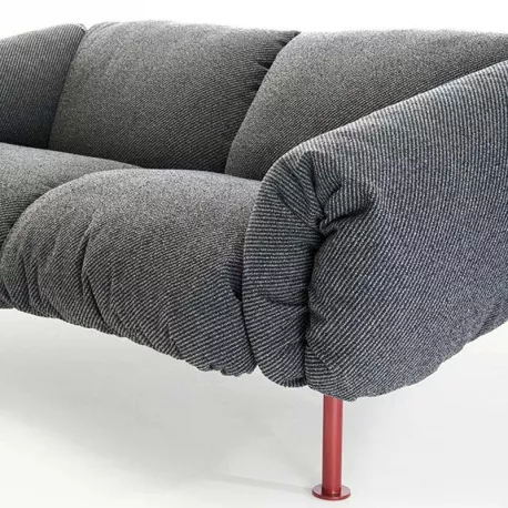 Das Zanotta ZA:ZA 2-Sitzer Sofa ist ein Meisterwerk der modernen Möbelgestaltung. Das stabile Stahlgestell ist in mattem Schwarz oder lebhaftem Rot lackiert und wird von steifen anthrazitfarbenen Polyesterbändern unterstützt. Die Polsterung besteht aus hochwertigem Polyurethan und Polyesterkugeln, die Komfort und Haltbarkeit bieten. Der Innenbezug besteht aus strapazierfähigem Polyesterstoff, während der abnehmbare Außenbezug aus Stoff gefertigt ist. Dieses Sofa vereint zeitgenössisches Design mit hohem Sitzkomfort und ist eine Bereicherung für jedes Wohnzimmer.
