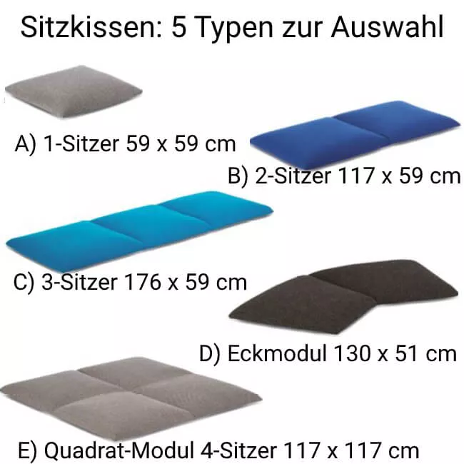 Da dieses Gartensofa mehrere konfigurierbare Varianten bietet, die wir hier nicht alle darstellen können, helfen wir Ihnen gern bei deren Auswahl.