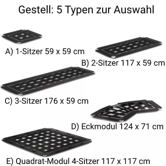 - Modulares Sitzsystem mit Aluminiumrahmen und elastischer Auflage