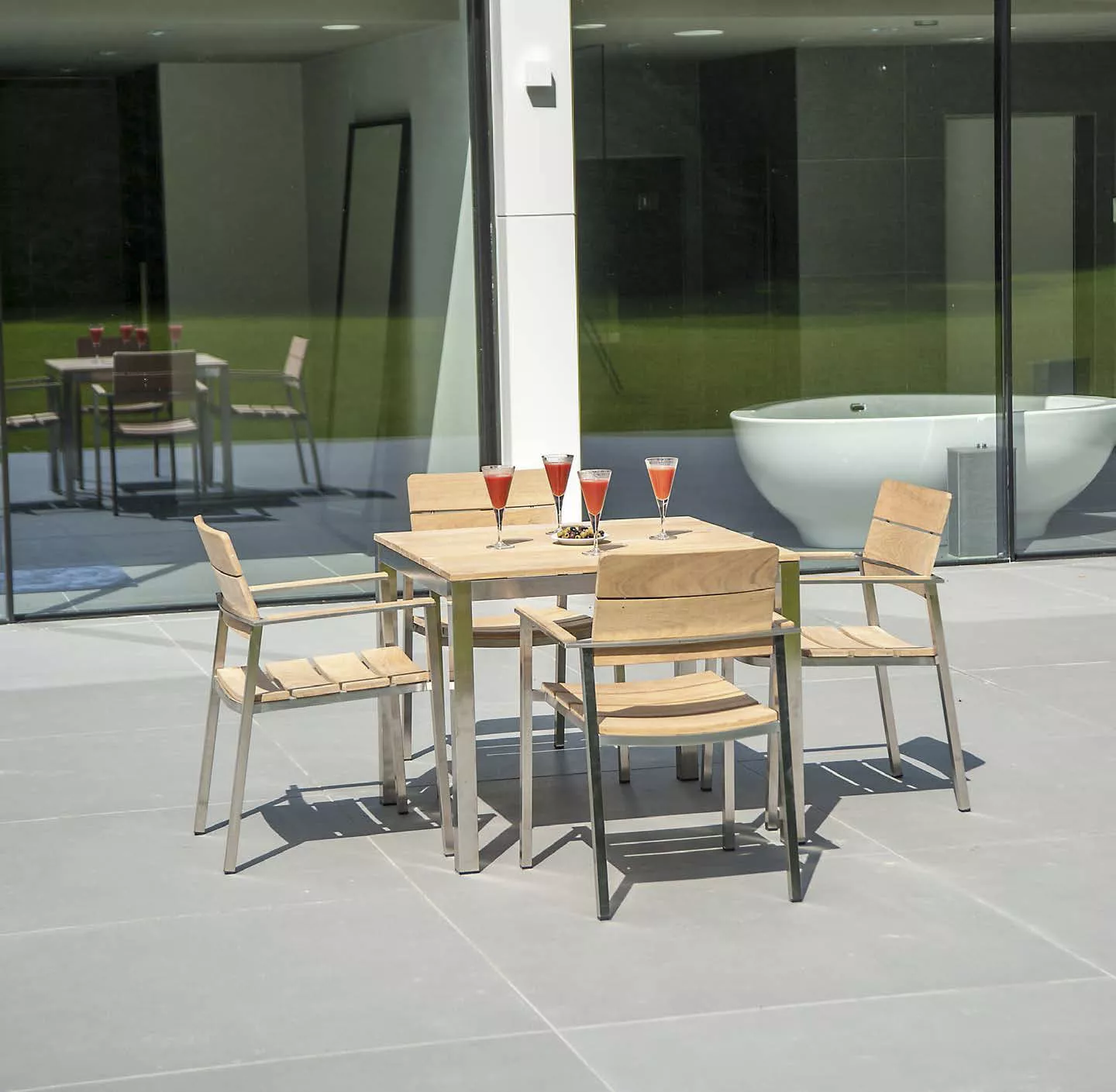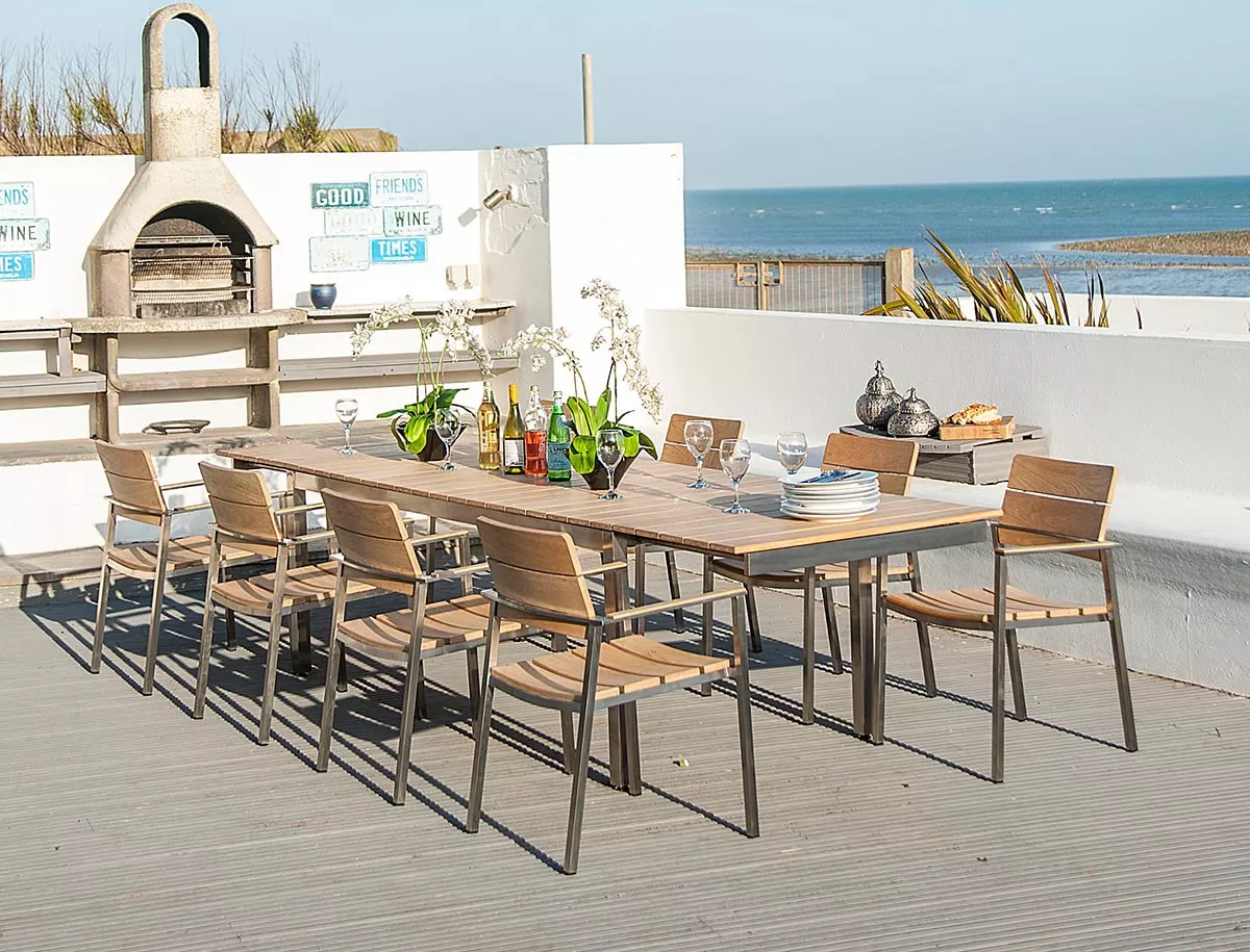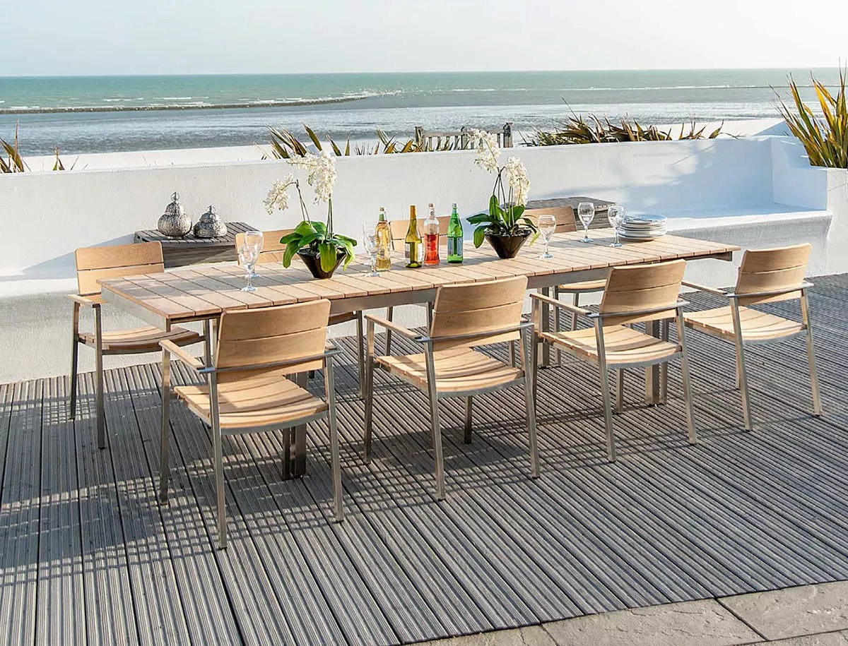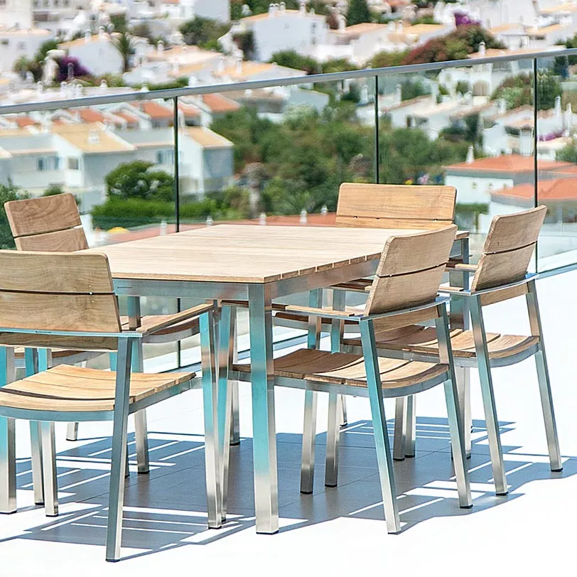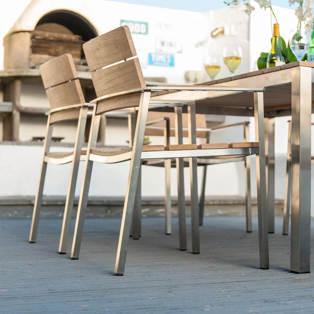 Die eleganten und geradlinigen Möbel wurden auch entwickelt, damit sie mit unseren Roble-Massivholzmöbeln kombiniert werden können. Die Auswahl ist noch größer, wenn man die Cologne Edelstahlstühle mit Roble Massivholztischen kombiniert.