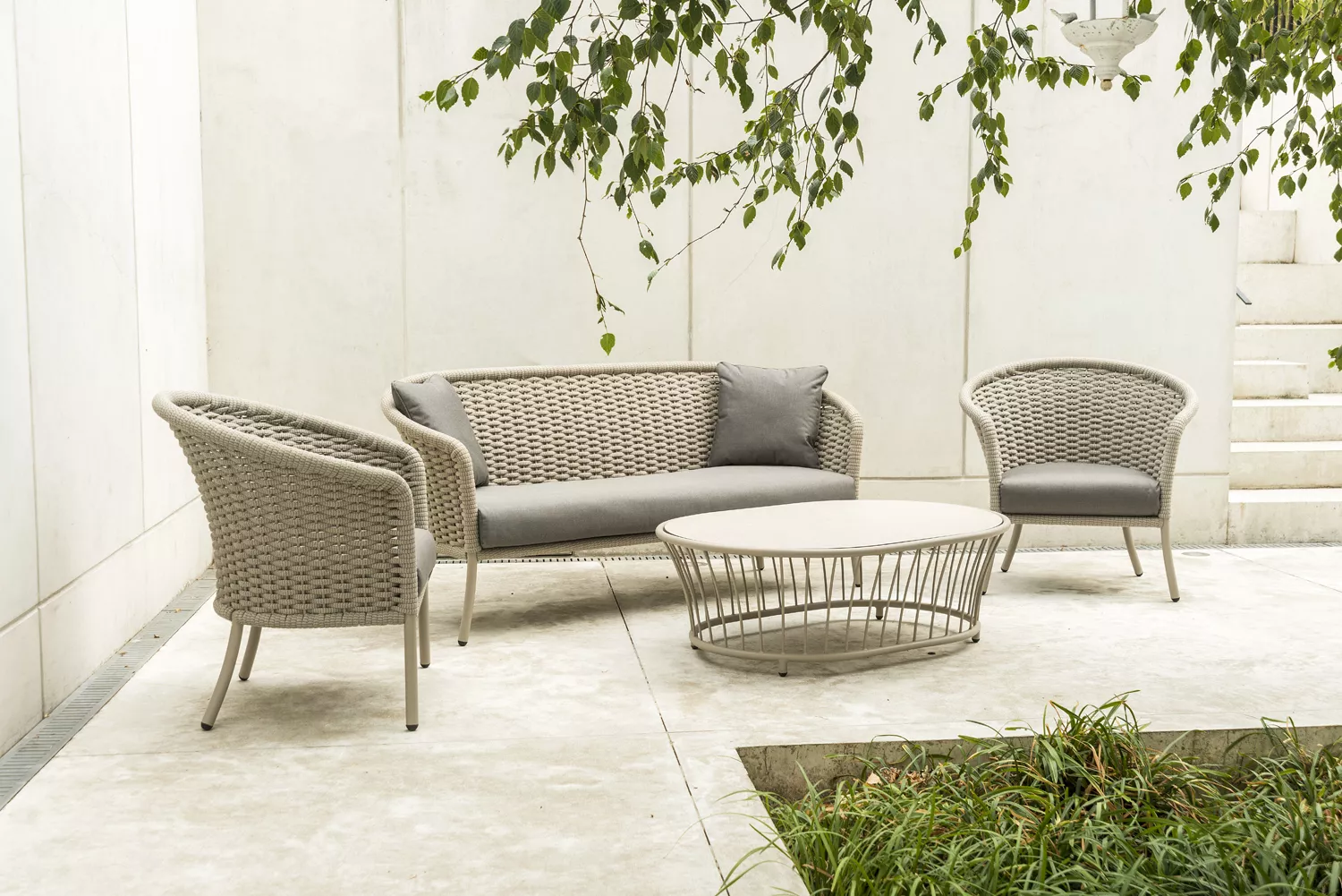 Neuheit des Jahres bei Alexander Rose ist die atemberaubende Loungekollektion Cordial. Sie besteht aus sechs Einzelteilen, die entweder aus pulverbeschichtetem Aluminium oder aus elektropoliertem Edelstahl gefertigt sind. Die clevere Kombination aus einem Aluminiumgestell und geflochtenem Outdoorseil schafft ein optisch wunderschönes Möbelstück, das sowohl im Garten als auch im Innenbereich gleichermaßen zuhause ist. Die Kissen sind in 3 Farben erhältlich - Anthrazit, Haferflocken oder Holzkohle. Die Kissen können mit warmem Seifenwasser und einem Mikrofasertuch gereinigt werden. Für hartnäckige Flecken auf den Kissen empfehlen wir ein mildes Reinigungsmittel für Textilen. Die Kissen sind wasserdicht und können im Freien gelassen werden. Um den Reinigungsaufwand zu verringern, empfehlen wir bei längerer Nichtnutzung die Beach Lounge abzudecken oder die Kissen an einem trocken Ort zu verstauen.