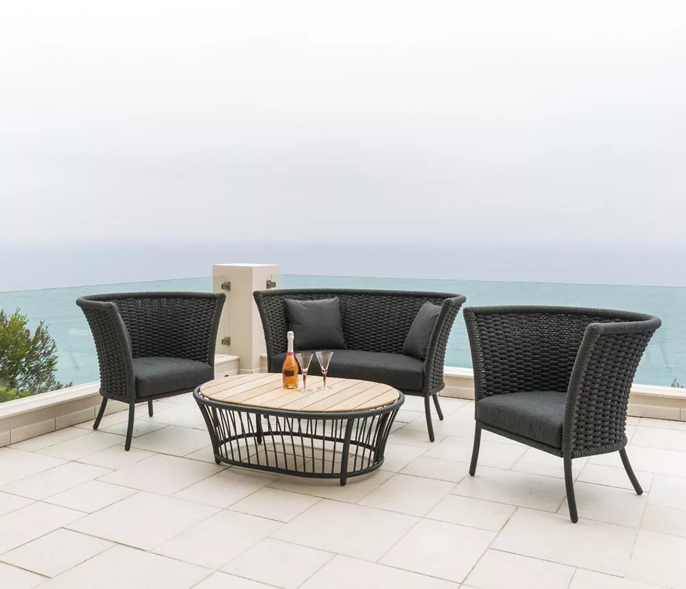 Diese wetterfeste Metall Loungekollektion schafft eine erholsame und romantische Atmosphäre in Ihrem Garten oder auf der Terrasse. Die Cordial Lounge vereint Komfort, Vielseitigkeit und Funktionalität und ist eine perfekte Ergänzung für Entspannung im Freien.