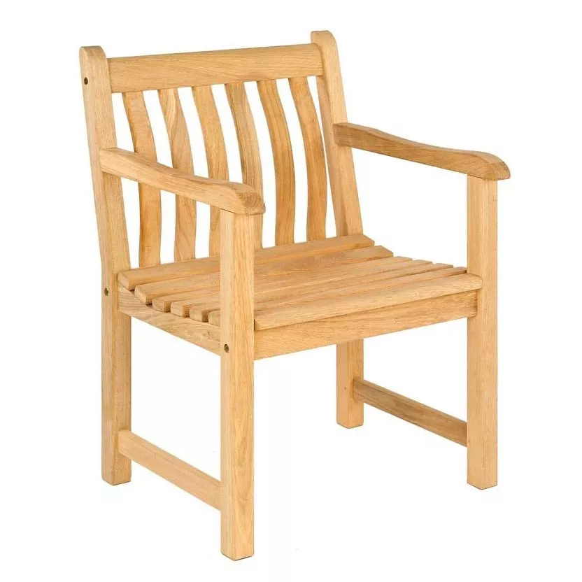 Alexander Rose Roble - Bengal Armlehnstuhl • Roble Gartenstuhl • Outdoor Essstuhl RobleDie Roble Kollektion bietet einige der schönsten Gartenmöbel mit einer Auswahl an modernen und traditionellen Designs. Egal, ob Sie klare Linien oder traditionelles klassisches Design bevorzugen, Sie werden die perfekten Möbel für Ihren Platz im Garten finden. Roble hat einen leichten Glanz und eine glatte Struktur mit eng verbundenen Fasern und ist dadurch extrem langlebig. Die Möbel werden in Bolivien gefertigt und das Holz ist zu FSC ® 100% zertifiziert. Alexander Rose fertigt seit 1994 Gartenmöbel mit herausragendem Design und hat sich inzwischen einen Ruf zu einem der Marktführer für hochwertige Holzmöbel erarbeitet. In mehr als zwanzig Jahren haben wir viele klassische Möbelstücke in verschiedenen langlebigen Hölzern entworfen. Diese Hölzer sind ideal für die Möbelproduktion und ermöglichen uns schöne Konstruktionsdetails. Dadurch heben sich Roble Möbel ab, was von unseren anspruchsvollen Kunden geschätzt wird. Die Holz-Gartenmöbel-Kollektionen bieten eine umfassende Palette an Möbeln aus 5 verschiedenen Holzarten. Alle Hölzer stammen aus nachhaltiger Forstwirtschaft. Alexander Rose Premium Hartholzkollektion ist aus bolivianischem Roble gefertigt, eines der stärksten und haltbarsten Hölzer der Welt. Die zweite Hartholz Kollektion ist aus Cornis, das aus dem Kongo in Zentralafrika stammt. Als dritte Holzart bieten wir Mahagoni, welches ebenfalls auch aus dem Kongo in Zentralafrika kommt. Unsere vierte Holzart kommt aus Osteuropa – das Nadelholz Kiefer, ein Holz, das sich mehr für schwere und rustikale Möbel eignet. Die fünfte Kollektion ist eine weiß lackierte Möbelserie namens New England, hergestellt aus vietnamesischen Akazienholz. Alexander Rose verfügt über die größte Auswahl an Holzbänken in Großbritannien und entwickelte die erste ergonomische Rückenlehne mit gebogenen Latten. Dies hat sich inzwischen zu einem anerkannten Design Klassiker entwickelt. Die Leidenschaft von Alexander Rose für die Herstellung von schönen Möbeln hat nie nachgelassen und wir wissen, dass Sie mit Freude Möbel aussuchen, die Ihren persönlichen Stil widerspiegeln. Für jeden ist etwas dabei. Alexander Rose steht in ganz Großbritannien und Europa für Qualität und Design und ist für nachhaltige Gartenmöbel-Produkte anerkannt. Produkteigenschaften Gestell aus Roble Holz Sitz- und Rückenfläche: Roble Holz wetterfeste Materialien leicht zu reinigen Maße: (B × T × H) 62,5 × 56 × 106 cm Gewicht: 9 Kg