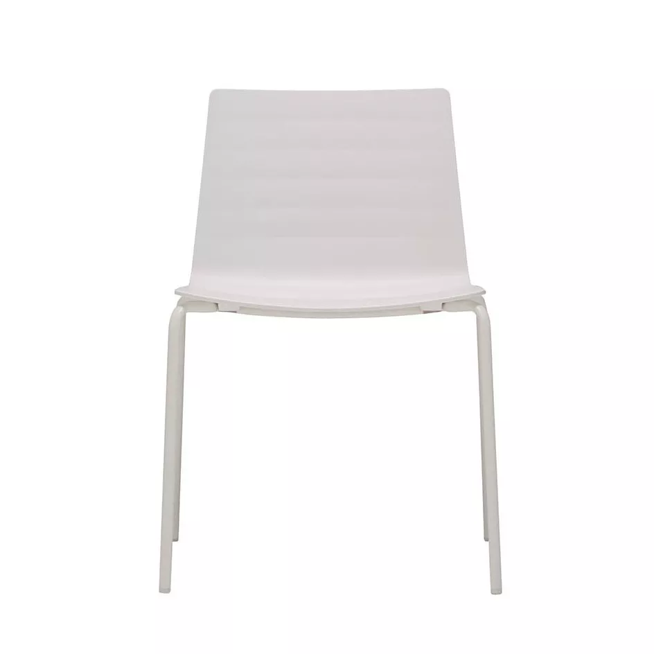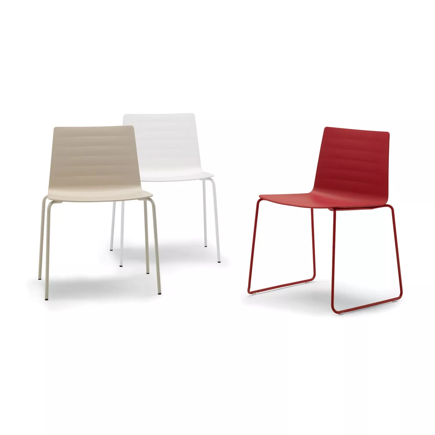 Andreu World Flex Outdoor Gartenstühle mit einer Sitzschale aus Terpolymer in verschiedenen Farben, montiert auf dem Gestell aus EPL5-behandeltem Stahl. Der Einsatz der modernen Technologie verbunden mit einem einzigartigen Design gewährleisten einen großen Komfort und einfache Wartung. Flex's unverwechselbares Design betont den luftigen Charakter dieser Kollektion. Mit einer Vielzahl von stilvollen Farbkombinationen ist diese Kollektion ideal für jede Outdoor-Umgebung.