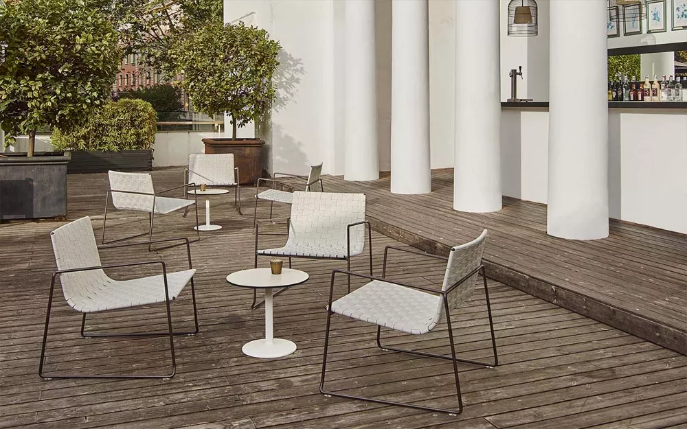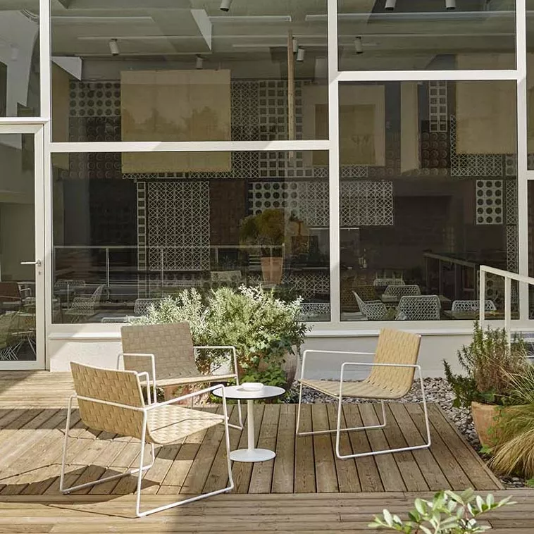 Die wetterfesten Trenza Modelle sind ideal für die städtische Gärten und Terrassen geeignet. Trenza Sitzmöbel bilden in der Kombination mit Couchtischen sehr praktische und bequeme Loungegruppe. Andreu World Kollektionen werden leidenschaftlich und mit viel Liebe zum Detail gefertigt. Durch die Gestaltung von wunderschönen und einzigartigen Outdoor-Möbeln, die mit einer schlichten Eleganz die Natur widerspiegeln, trägt Andreu World zum Wohlbefinden der Menschen bei.