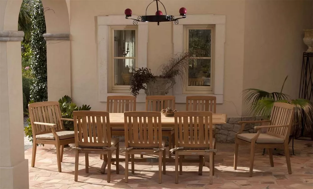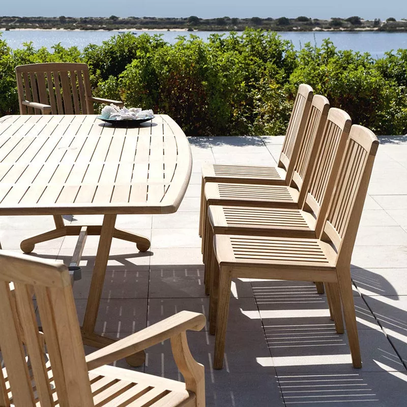 Chesapeake ist eine umfangreiche Gartenmöbel-Kollektion aus massivem Teakholz, die sowohl Essstühle und Gartensessel als auch eine Reihe von Esstischen rechteckig / rund und niedrigen Loungetischen enthält. Die Chesapeake Kollektion ist ein perfektes Beispiel der Verwendung von rustikalem Holz. Teakholz weist einen natürlichen hohen Ölgehalt auf, der ihm Stabilität und Widerstandskraft selbst gegen extreme Witterungseinflüsse verschafft. Zusammen mit dem hochwertigen Edelstahl die perfekte Kombination für Outdoor-Möbel.