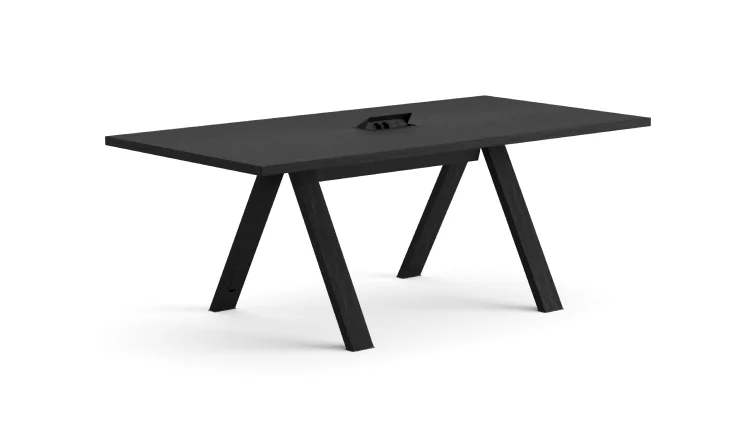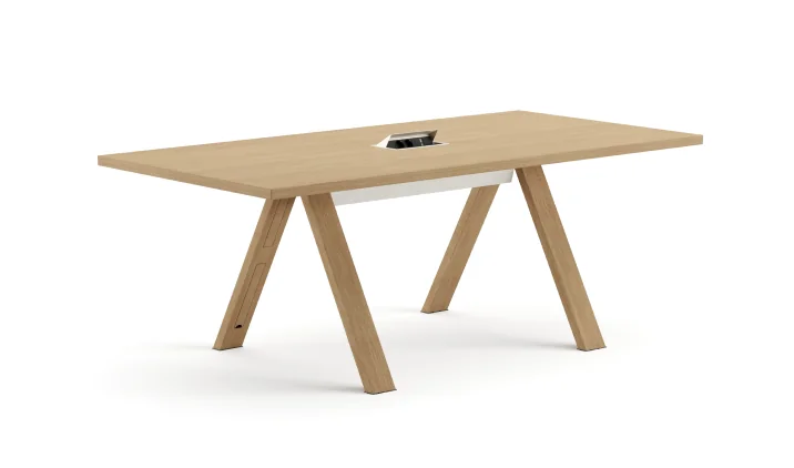 Die Position der Beine kann wahlweise bündig mit der Tischkante oder mit einem Abstand von 60 cm gewählt werden. Mit einer Höhe von 74 cm eignet sich der Tisch ideal für Büros, Konferenzräume und Home-Office-Bereiche.