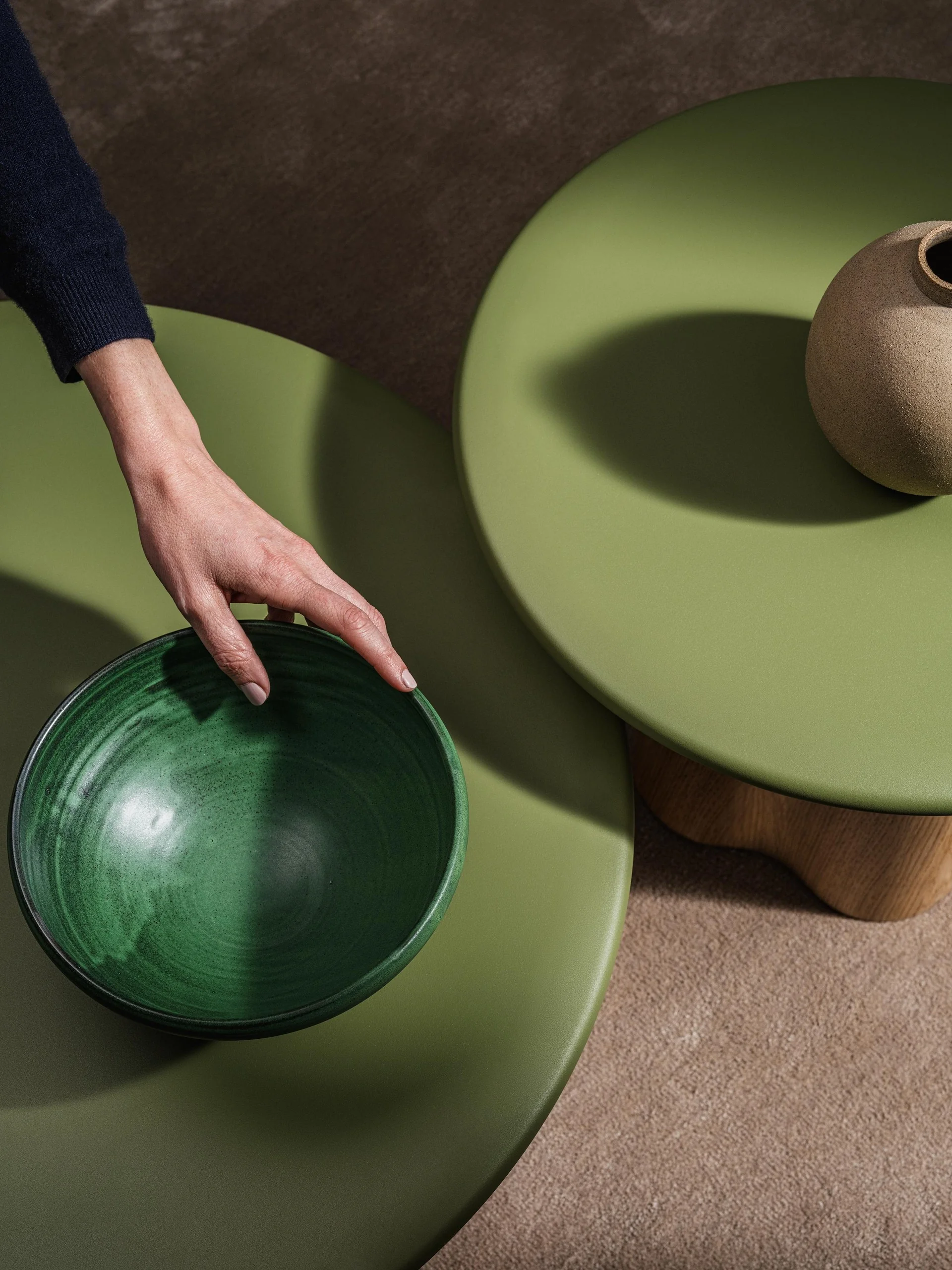 - Tischform: rund oder organisch, 2 cm dick
