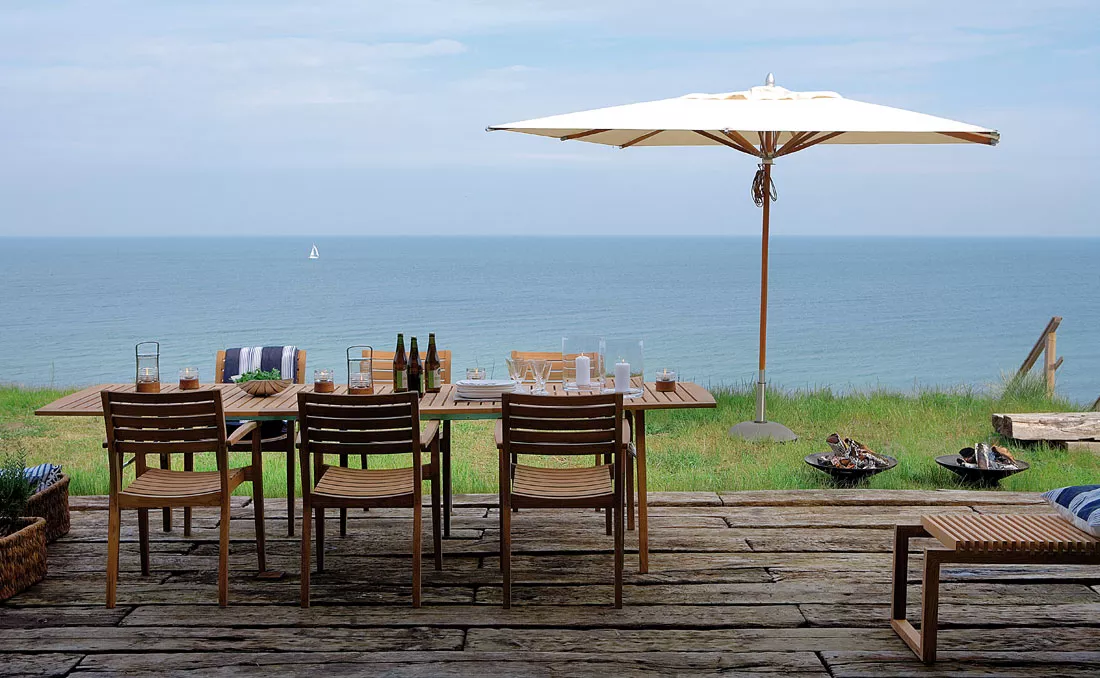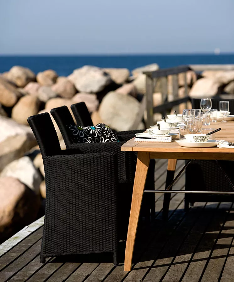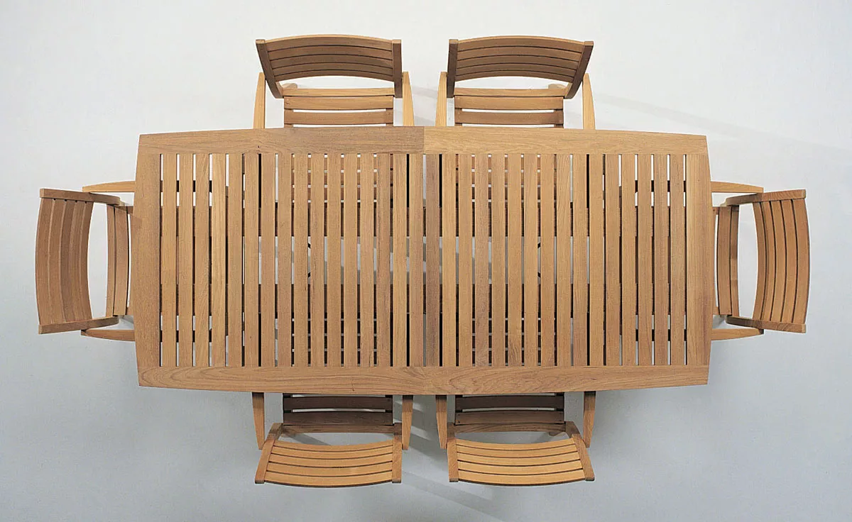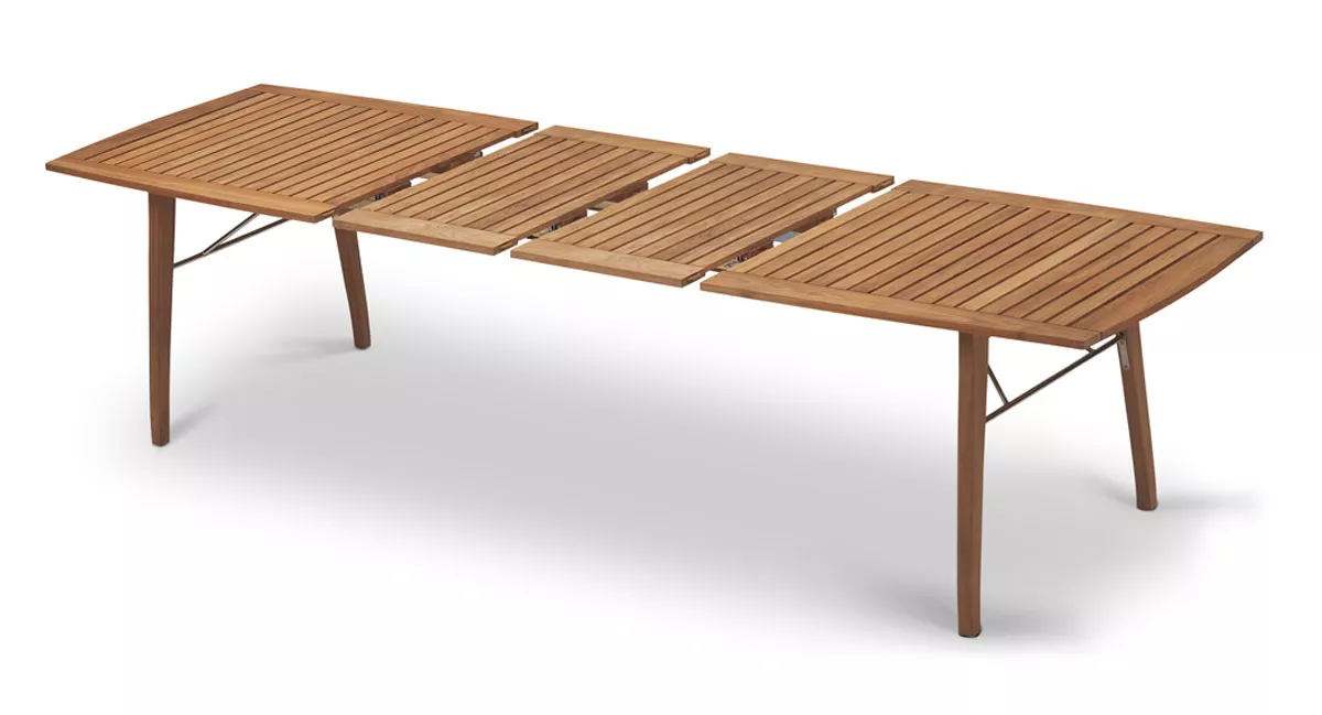 Der elegante, geräumige Tisch mit dem einfachen Auszugsystem lässt sich für große und kleine Gesellschaften drinnen und draußen decken.