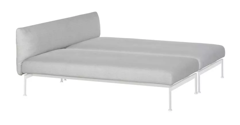 Loungeliege Layout mit Bespannung aus Sunbrella® und einem Gestell aus Edelstahl pulverbeschichtet in den Farben Forge Grey oder Arctic White.