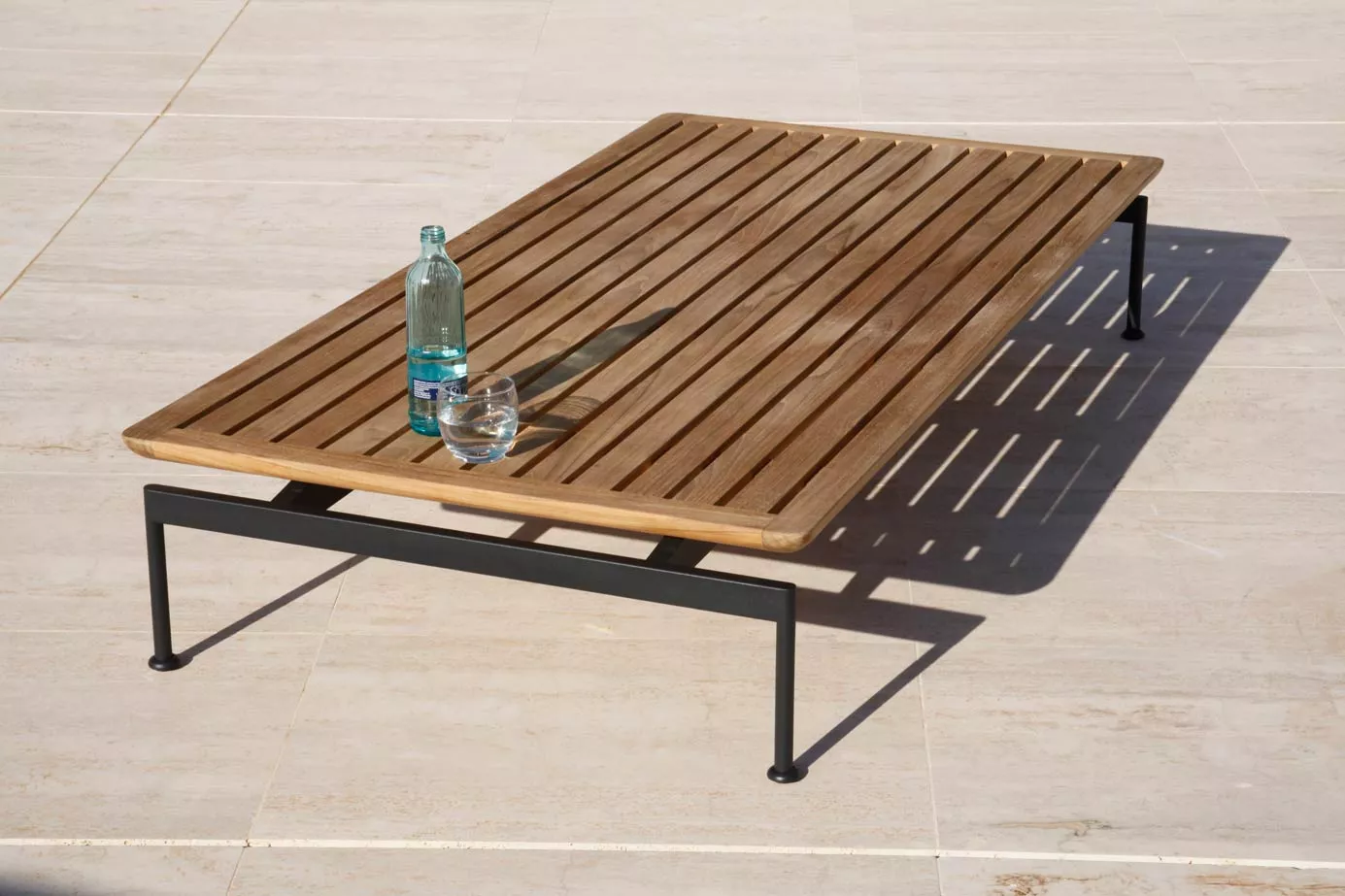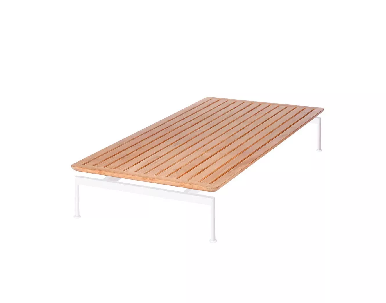 Loungetisch • Kaffeetisch Layout mit Teakholz Tischplatte (belattet) und einem Gestell aus Edelstahl pulverbeschichtet in den Farben Forge Grey oder Arctic White.
