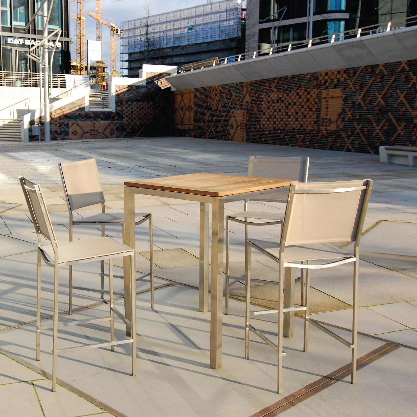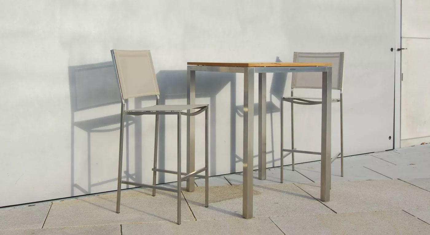 Es handelt sich um einen Outletartikel! Royal Mirage NEW YORK Bartisch 80 x 80 cmEntdecken Sie den Bartisch der NEW YORK Kollektion von Royal Mirage. Die Tischplatte ist in der Ausführung 80 x 80 cm erhältlich. Der Bartisch ist aus Teakholz und weist daher einen natürlichen hohen Ölgehalt auf, der ihm Stabilität und Widerstandskraft selbst gegen extreme Witterungseinflüsse verschafft. Zusammen mit dem hochwertigen Edelstahl die hervorragende Kombination für Outdoor-Möbel. Edelstahl Teakholz aus Indonesien Ganzjährig wetterfest Absolut pflegeleicht