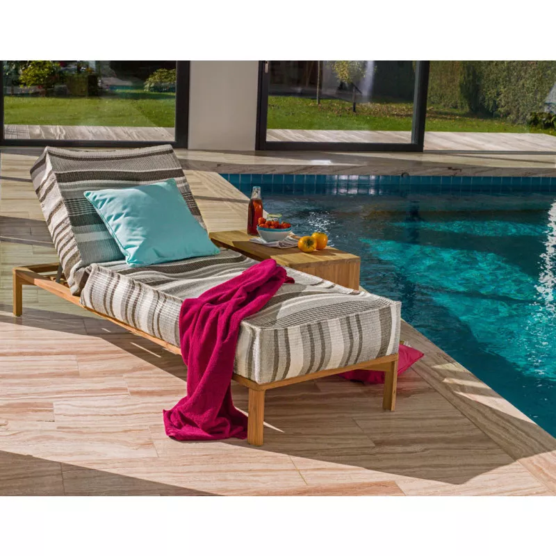 Weishäupl New Hampton SonnenliegeDas Lounge-Programm Weishäupl New Hampton besticht durch klare Formen in Verbindung mit erstklassigen Materialien, die New Hampton seinen zeitlosen, geradlinigen Charakter verleihen. Das handwerklich gearbeitete Teakgestell wird durch pulverbeschichtete Metallwangen in Weiß oder Anthrazit ergänzt. Die Polsterbezüge aus unserem bewährten Polyacrylgewebe sind in einer breiten Farbpalette erhältlich. Für eine individuelle Gestaltung stehen neben einem klassischen 3-Sitzer Sofa und einem Einzelsessel verschiedene Elemente zur Wahl. New Hampton kann durch verschiedene Elemente zu einem Ensemble angeordnet werden. Beistelltische runden das Programm ab. New Hampton eignet sich für den Innen- und geschützten Außenbereich im privaten wie öffentlichen Raum. Ob Wohnzimmer, Hotel-Lobby oder Terrasse – New Hampton passt sich verschiedenen Umgebungen an. Hochwertiges Teakholz Polster mit Acrylstoff BezugInkl. Rollen Ganzjährig wetterfest Leicht zu reinigen Maße (B × T × H): 207 × 72 × 63 cm Gestell: Teak massiv unbehandelt Sitz-Polster: Herausnehmbare, vliesummantelte Kaltschaumfüllung Sitzhöhe: 40 cm Gewicht: 25 kg