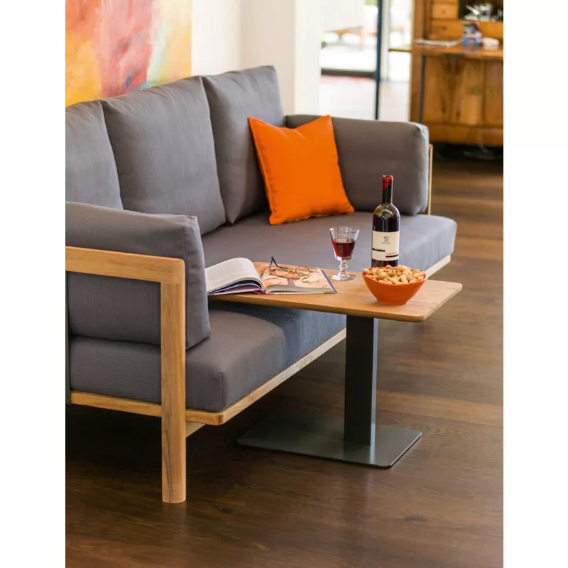Weishäupl New Hampton Dreisitzer-Anbauelement | L+R Das Lounge-Programm Weishäupl New Hampton besticht durch klare Formen in Verbindung mit erstklassigen Materialien, die New Hampton seinen zeitlosen, geradlinigen Charakter verleihen. Das handwerklich gearbeitete Teakgestell wird durch pulverbeschichtete Metallwangen in Weiß oder Anthrazit ergänzt. Die Polsterbezüge aus unserem bewährten Polyacrylgewebe sind in einer breiten Farbpalette erhältlich. Für eine individuelle Gestaltung stehen neben einem klassischen 3-Sitzer Sofa und einem Einzelsessel verschiedene Elemente zur Wahl. New Hampton kann durch verschiedene Elemente zu einem Ensemble angeordnet werden. Beistelltische runden das Programm ab. New Hampton eignet sich für den Innen- und geschützten Außenbereich im privaten wie öffentlichen Raum. Ob Wohnzimmer, Hotel-Lobby oder Terrasse – New Hampton passt sich verschiedenen Umgebungen an. Hochwertiges Teakholz Polster mit Acrylstoff Bezug Ganzjährig wetterfest Leicht zu reinigenArmlehne links oder rechts (davorstehend) Maße (B × T × H): 204 × 86 × 64 cm Gestell: Teak massiv unbehandelt Sitz-Polster: Herausnehmbare, vliesummantelte Kaltschaumfüllung Sitzhöhe: 40 cm Gewicht: 30 kg