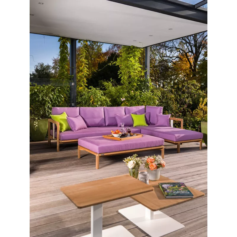 Weishäupl New Hampton Récamiere | L+RDas Lounge-Programm Weishäupl New Hampton besticht durch klare Formen in Verbindung mit erstklassigen Materialien, die New Hampton seinen zeitlosen, geradlinigen Charakter verleihen. Das handwerklich gearbeitete Teakgestell wird durch pulverbeschichtete Metallwangen in Weiß oder Anthrazit ergänzt. Die Polsterbezüge aus unserem bewährten Polyacrylgewebe sind in einer breiten Farbpalette erhältlich. Für eine individuelle Gestaltung stehen neben einem klassischen 3-Sitzer Sofa und einem Einzelsessel verschiedene Elemente zur Wahl. New Hampton kann durch verschiedene Elemente zu einem Ensemble angeordnet werden. Beistelltische runden das Programm ab. New Hampton eignet sich für den Innen- und geschützten Außenbereich im privaten wie öffentlichen Raum. Ob Wohnzimmer, Hotel-Lobby oder Terrasse – New Hampton passt sich verschiedenen Umgebungen an. Hochwertiges Teakholz Polster mit Acrylstoff Bezug Ganzjährig wetterfest Leicht zu reinigenArmlehne links oder rechts (davorstehend) Maße (B × T × H): 204 × 86 × 64 cm Gestell: Teak massiv unbehandelt Sitz-Polster: Herausnehmbare, vliesummantelte Kaltschaumfüllung Sitzhöhe: 40 cm Gewicht: 32 kg