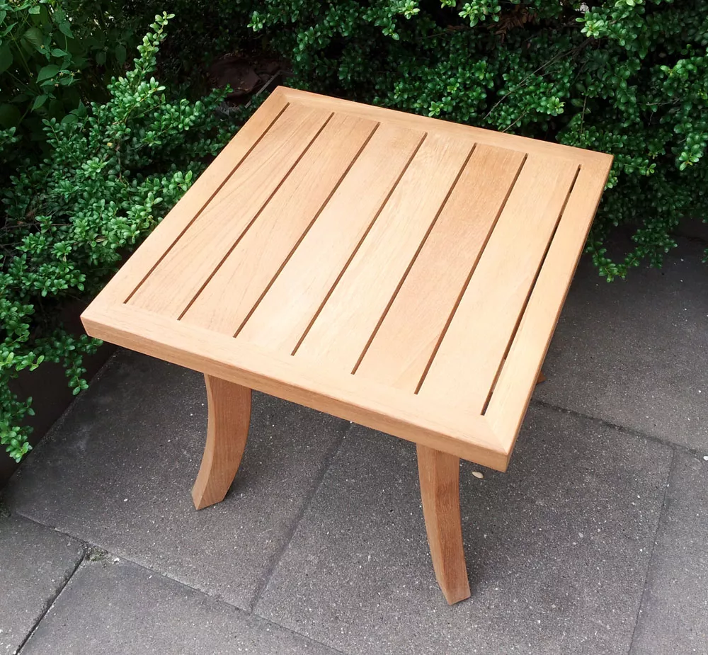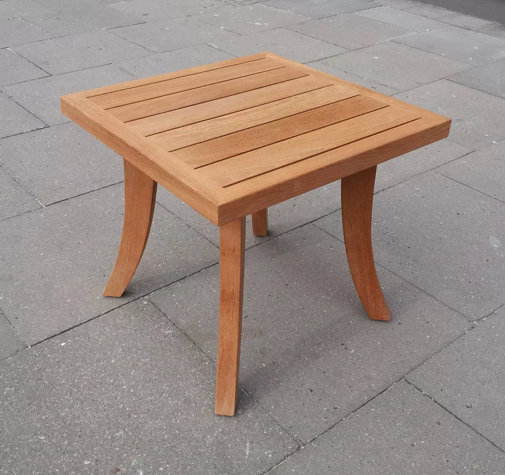 Royal Mirage® verwendet ausschließlich hervorragendes, massives Teakholz, dessen nahezu unbegrenzte Haltbarkeit durch den hohen natürlichen Ölanteil und dauerhafte Bestandteile wie Kautschuk gewährleistet wird. Dieses Material ist außerordentlich witterungsbeständig und trotzt mühelos Regen, Sonne, Schnee und Eis. Dadurch ist der Nizza Beistelltisch ideal für den ganzjährigen Einsatz im Freien geeignet und bleibt über viele Jahre hinweg ein zuverlässiger und schöner Begleiter in Ihrem Garten oder auf Ihrer Terrasse.