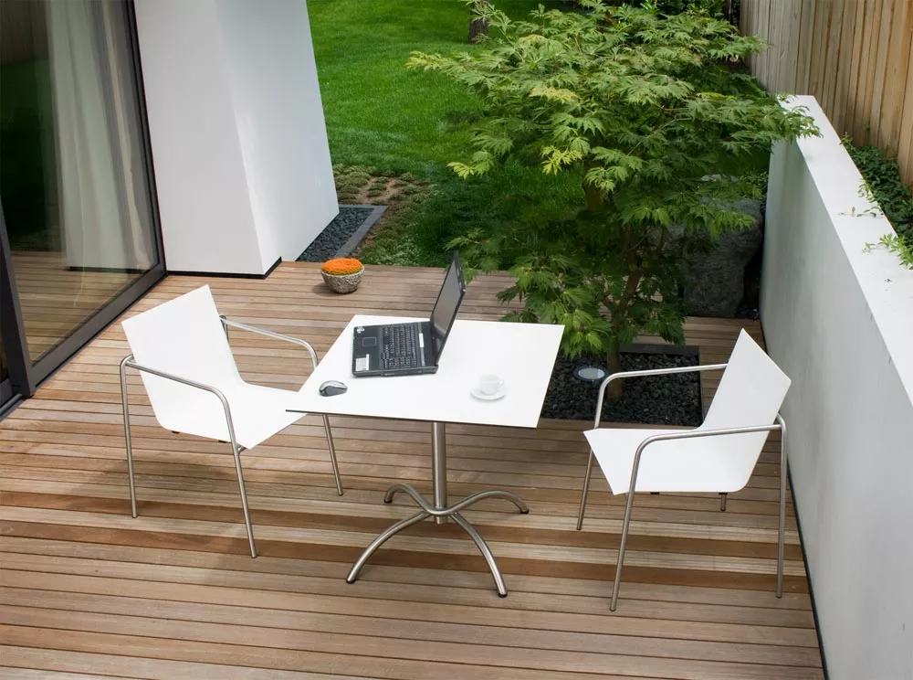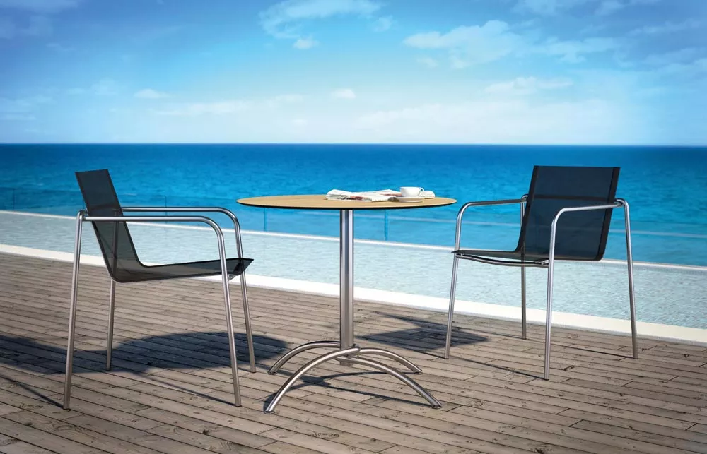 Fm-laminat eignet sich hervorragend für den Außenbereich. Die Tischplatten bestehen aus einer Verbindung von Zellulose und Harzen, die mit einem Spezialwitterungsschutz verbunden sind - besonders licht- und witterungsbeständig.