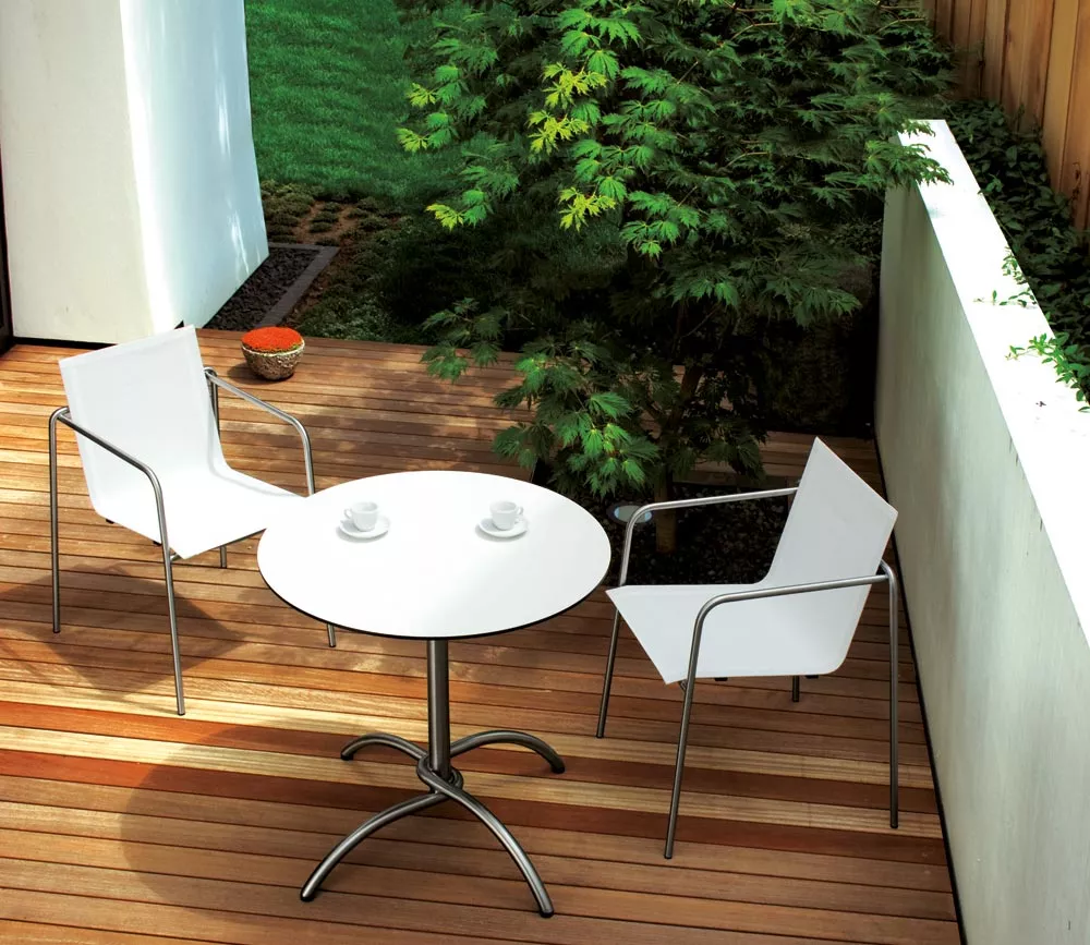 Fm-laminat eignet sich hervorragend für den Außenbereich. Die Tischplatten bestehen aus einer Verbindung von Zellulose und Harzen, die mit einem Spezialwitterungsschutz verbunden sind - besonders licht- und witterungsbeständig.
