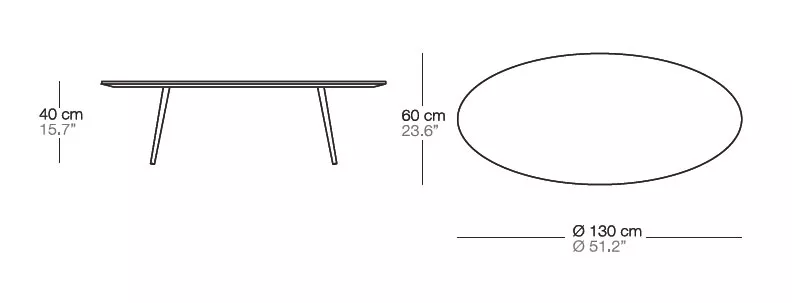 % 1.213,00 € (5.5% gespart)Produktinformationen "Bivaq Vint Loungetisch oval 130 × 60 cm"