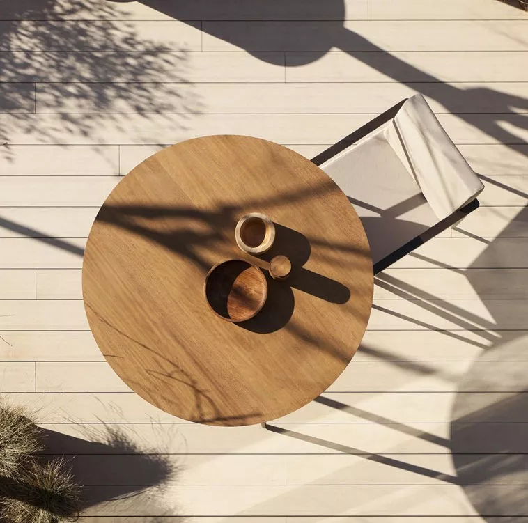 Übersicht Stoffauswahl Bivaq Vint Esstisch von Bivaq Die Vint Kollektion von Bivaq verfügt über ein modernes Image, ist wetterfest und für den Außenbereich sehr gut geeignet. Die Palette der Komponenten dieser Kollektion bildet eine komplette und ganzheitliche Lösung für Ihren Ess- und viele andere Bereiche. Der Vinytex- (Kunststoff-Haptik) oder Acryl-Stoff (Stoff-Haptik) der Kollektion Vint ist Wetter- und UV-beständig, damit die Bivaq Kollektion Vint optimal vor Umwelteinflüssen geschützt wird. Die robuste Struktur der Gartenmöbel-Serie ist aus hochwertigem Aluminium hergestellt und mit einer Pulverbeschichtung versehen. Aluminiumgestellpulverbeschichtet TischplattenIrokoholzHPLDekton Maße (Ø × H) 120 × 74 cm Sofas, armchairs, dining and low table collection, manufactured with an extruded aluminium structure, conified legs and final finish made with polyester powder coating. Acrylic fabric: 100% solution dyed acrylic, UV resistance (class. 7/8) with stain and water repellent finish. Washable at 30ºC. Open air drying. Vinytex fabric: synthetic fabric made of plastic coated polyester. Incorporate a waterproof layer. UV resistance (class. 7/8). It is recommended to clean it with neutral soap diluted in large quantity of water.