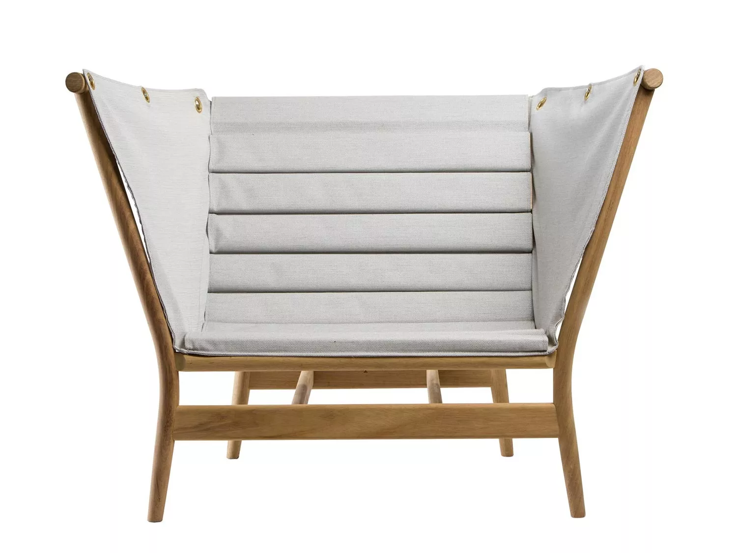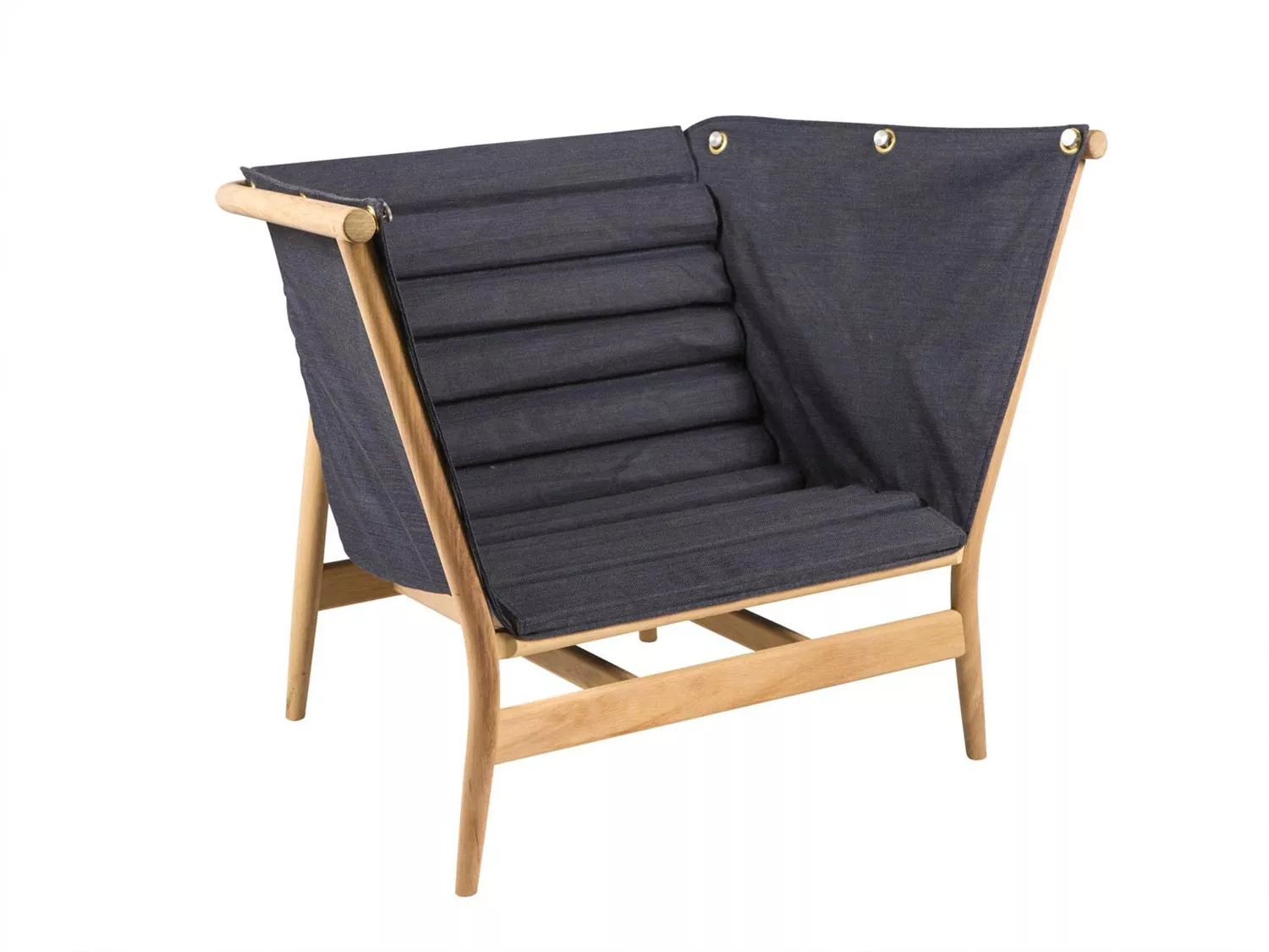 Calma Marea Gartensessel mit Holzgestell und Sitzfläche sowie Rückenlehne aus Batyline Gewebe, mit thermosgeschweißten Nähten bespannt. Er ist in 2 Farben erhältlich: Silber und Dunkelblau.