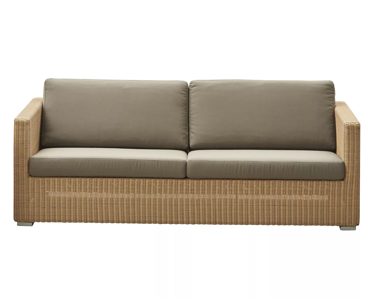 Das Sofa ist handgeflochten aus der wetterbeständigen Cane-line-Faser, die für Langlebigkeit und Widerstandsfähigkeit sorgt. Sie haben die Möglichkeit, das Chester 3-Sitzer Sofa mit verschiedenen Auflagen zu kombinieren, um Ihren individuellen Stil zu verwirklichen.