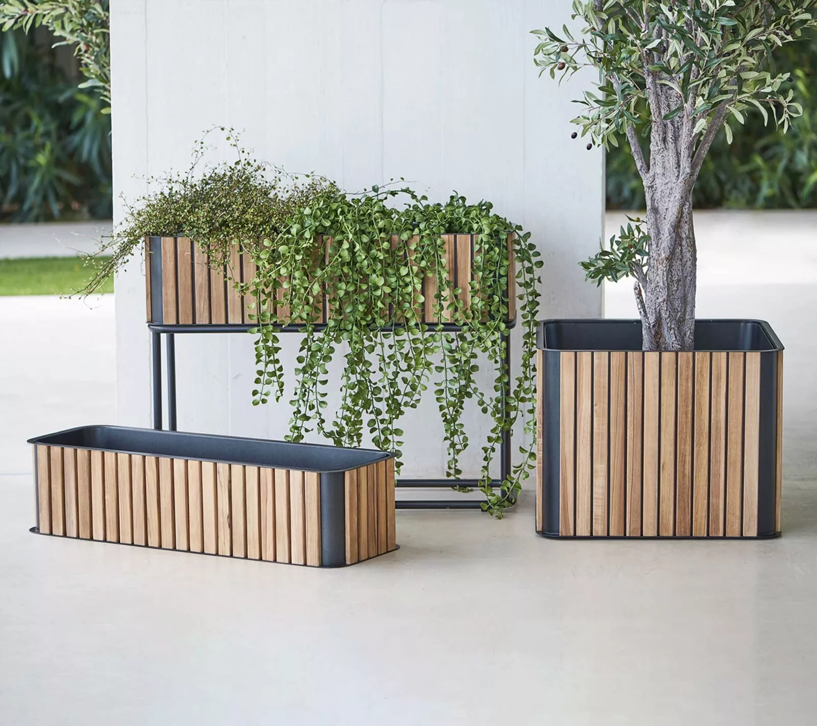 Die quadratischen Combine Pflanzgefäße von Cane-line sind moderne und vielseitige Pflanzgefäße, die durch ihren Materialmix überzeugen. Aus warmem Teakholz und pulverbeschichtetem Aluminium gefertigt, bieten sie einen einzigartigen Look, der in jede Umgebung passt.